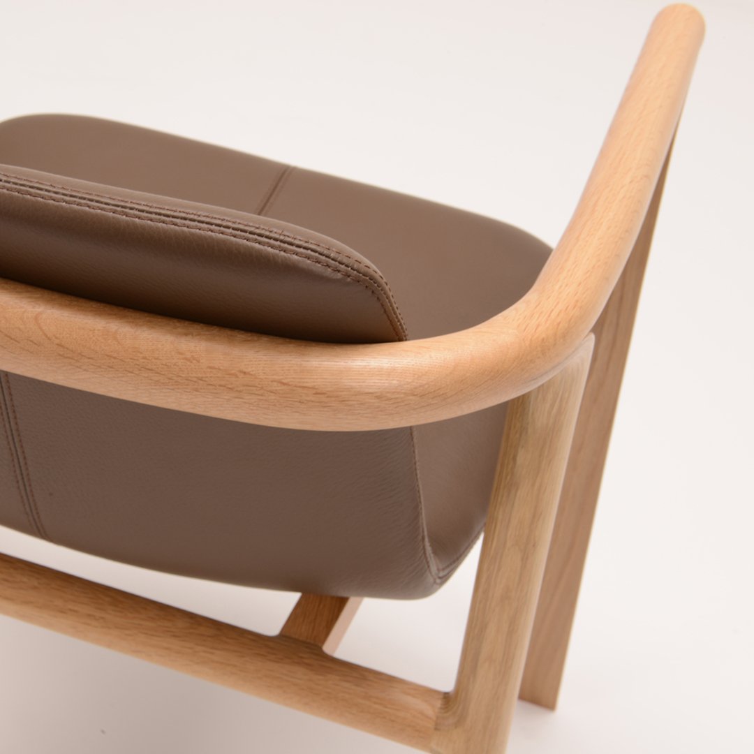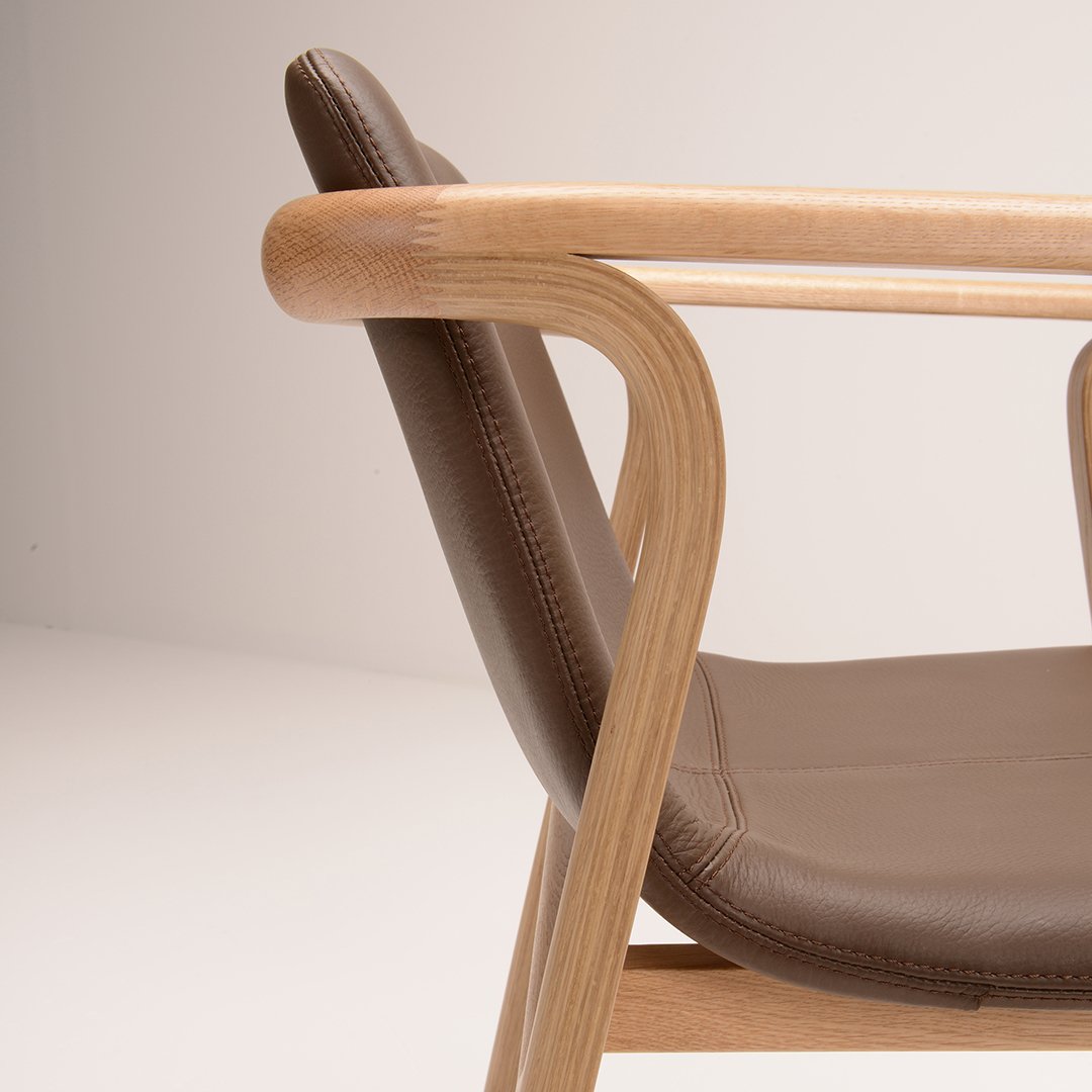 The industrial design studio Nendo of Tokyo and Milan, metaphorically splintered each piece of the wood arm frame, by the bold use of bent and laminated technology. The elegantly detailed finger-joint intersection of the curved back, cross sections, peel away, while ingeniously forming pliable, graceful off shoots of pure sculpture. The result: light-footed furniture with a soft, particularly smooth surface and a true masterpiece of woodwork.