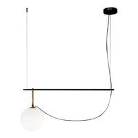 NH is a simple, versatile, practical appliance that can be laid or suspended. A white blown glass sphere slides along a brushed brass ring, which allows it to take different positions and to freely adjust and direct the diffuser. The frame becomes a support, a hook to hang the appliance to the wall, or a handle promoting an interaction with light.