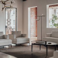 The collection comprises one, two, and three-seater sofas in wood with textile upholstery, suitable for diverse living spaces. Qi seamlessly infuses a subtle Asian aesthetic into contemporary contexts.