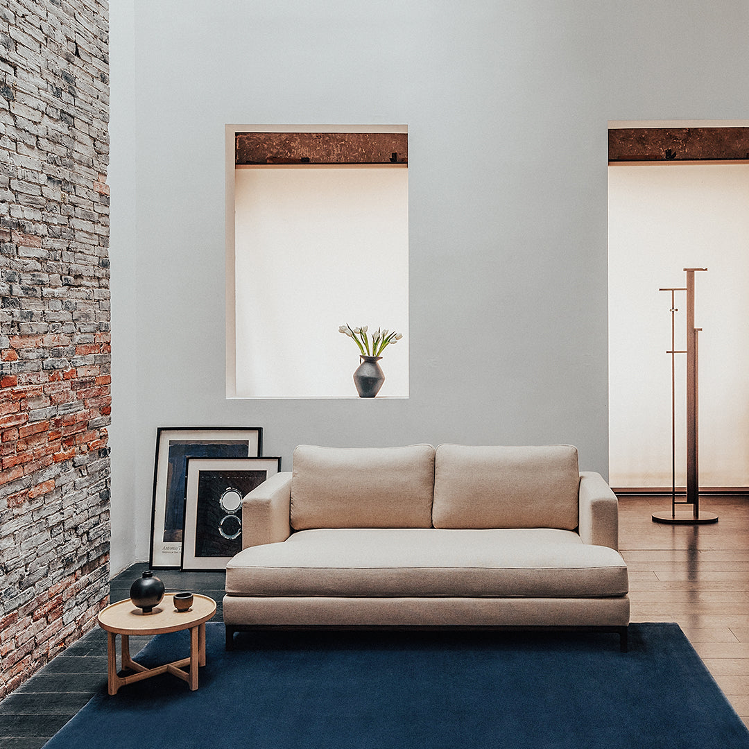 Named after the traditional Chinese concept of a "small sleep" at noon, the Qi Sofa draws inspiration from the Luohan Chuang - a dual - purpose bench for sitting and sleeping. Blending modern versatility with the minimal style of Jean-Michel Frank, it combines a wooden structural base with a padded platform and cushions for comfort in both seated and reclined positions.