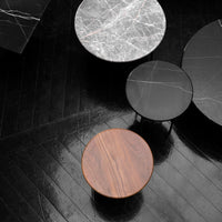 The premium material options elevate the Floema beyond mere functionality to become a tactile pleasure point within sophisticated living spaces. Choose between the cool sophistication of exclusive marble, the warm natural character of solid walnut, or the sleek practicality of black laminate—each option carefully selected to enhance the table's sculptural form while providing different sensory experiences that complement various interior palettes.