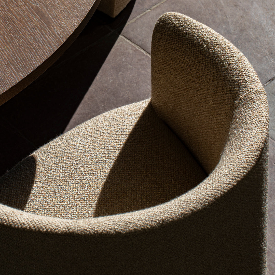 The chair's distinct personality—characterized by what Ross describes as "elegant yet strict femininity"—makes it equally at home in both period and contemporary environments. The embracing form creates an alluring presence while stopping short of being overly casual, allowing the Tearoom Lounge Chair to transition seamlessly between exclusive hospitality settings and sophisticated residential interiors. Available in a wide range of premium upholstery options, from textured bouclé to refined wools and luxurious leathers, the chair can be customized to complement any design scheme.