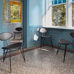 Semper dining chair is designed by the creative blacksmith, Nicklas Bang Christensen. A masculine family of chairs that works with a sharp geometry in a striking contrast to their softness and comfort. A sculptural and new design that draws the eye and occupies the room in which it is placed. Semper is the perfect item to place as a piece of art in the corner of your office or in a stylish pair next to the living room table for your guests. The dining chairs will surround your dining table in style, radiate pure class and high quality. Nicklas is known from his appearance on the Danish TV-show “Danmarks næste klassiker”, which brought him great success in furniture design. We are honoured to work with him on the Semper collection which is made in Italy and is available in black, cognac and java brown in the finest leather from Camo Leathers.