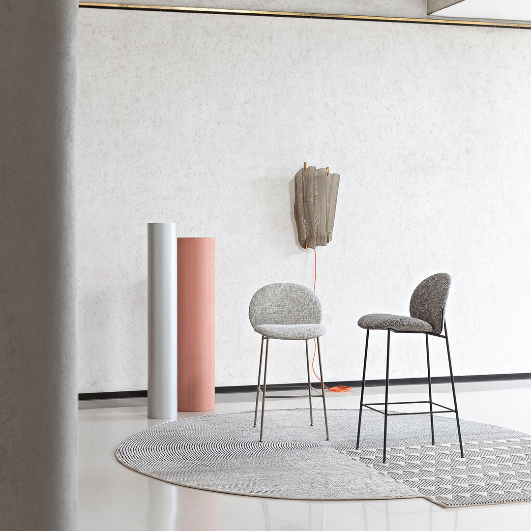 Ola originates from a simple idea but at the same time represents a complex concept – a welcoming arm chair created utilising four individual curved sheets. Each sheet converges towards a single centre. Four sheets become two sheets for the variation without arm rests. The metal frame has an essential and graphic silhouette in contrast with the padded rounded forms. Fully removable covers. From 2024, the product has been recalibrated to ensure new comfort.