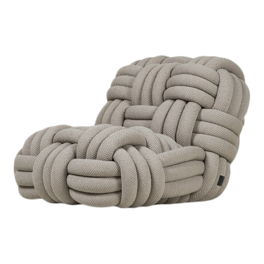 Inspired by the massive naval knots used to secure ships in port, Zupanc reimagined this utilitarian element into a statement piece for contemporary interiors. The oversized silhouette features extra-large "yarn" that mimics ship ropes, meticulously upholstered in premium knitted fabric and quilted in an elegant diamond pattern. Available in 15 sophisticated colorways, this sculptural lounge chair offers versatility for various interior design schemes—from minimalist modern to eclectic maximalist spaces.