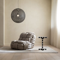 The chair's sturdy base provides stability while the voluminous woven structure offers a sense of being cradled in luxury. Perfect for design collectors seeking statement pieces with provenance and discerning homeowners who prioritize both aesthetics and comfort, the Knitty Lounge Chair represents the pinnacle of contemporary designer furniture—where form meets function in perfect harmony.