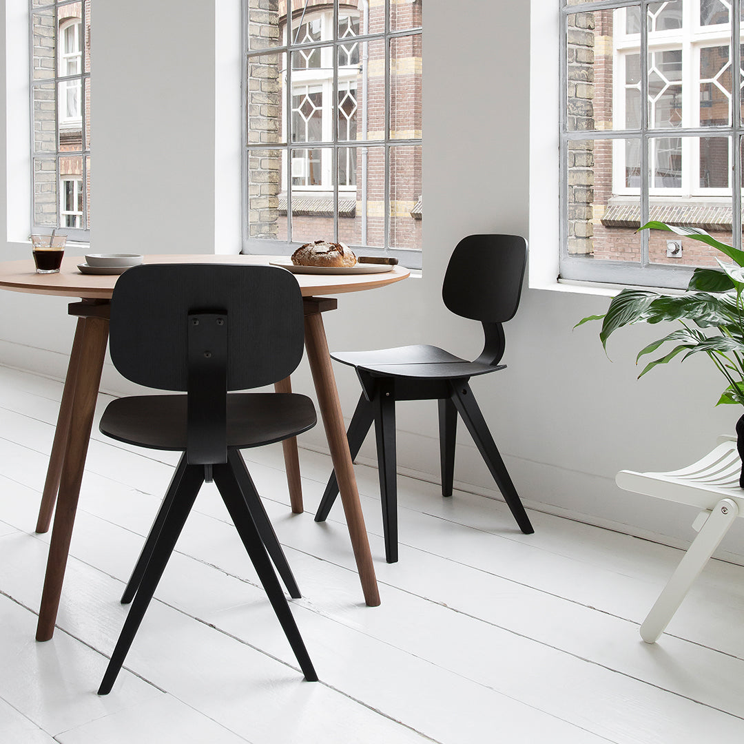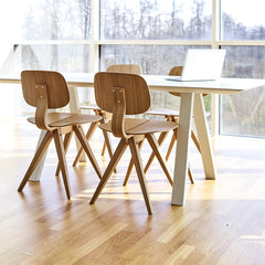 Named after its wing-like seat, the Mosquito Chair is a genuine eyecatcher, an elegant piece with a touch of poetry. This innovative design proved too demanding for 1950s manufacturing methods. But thanks to the recent efforts of Rex Kralj to bring this exemplary chair to life by using present-day machinery, design enthusiasts can now enjoy this fine example of innovative furniture. The Mosquito chair comes in natural oak, natural walnut and several distinctive colours.