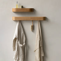 Clean lines, intuitive function and innate beauty define the Epoch Clothes Rack by Nina Bruun, one of two new designs from the Danish designer. Updating the ubiquitous coat rack and working from the idea of concealing unsightly hangers and tags behind something beautiful, the minimally elegant design profiles a considered combination of gently rounded edges, warm wood and discreet functionality. Developed and perfected over time, it is characterized by soft bands of undulating wood that sit like sculptures on a wall. Referencing 1950s design aesthetics and traditional craftsmanship, Epoch is pure in both form and material. Available in natural or dark stained oak, it is carefully sized to fit both purpose and place.