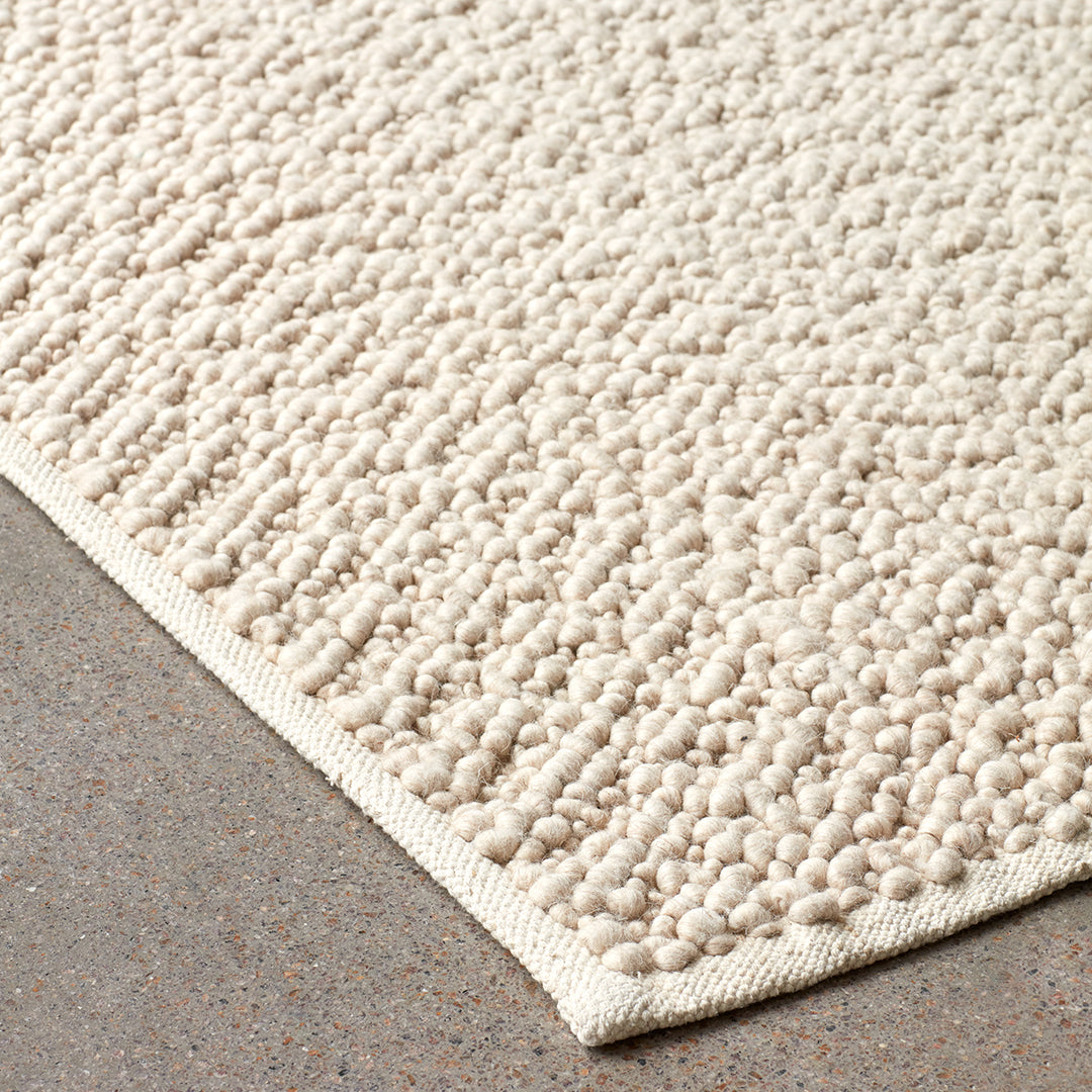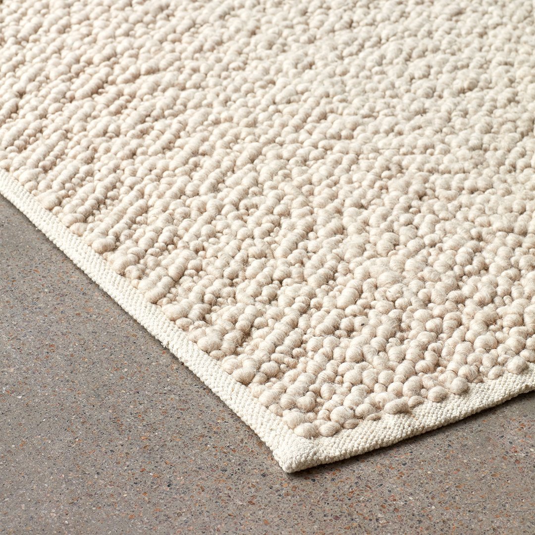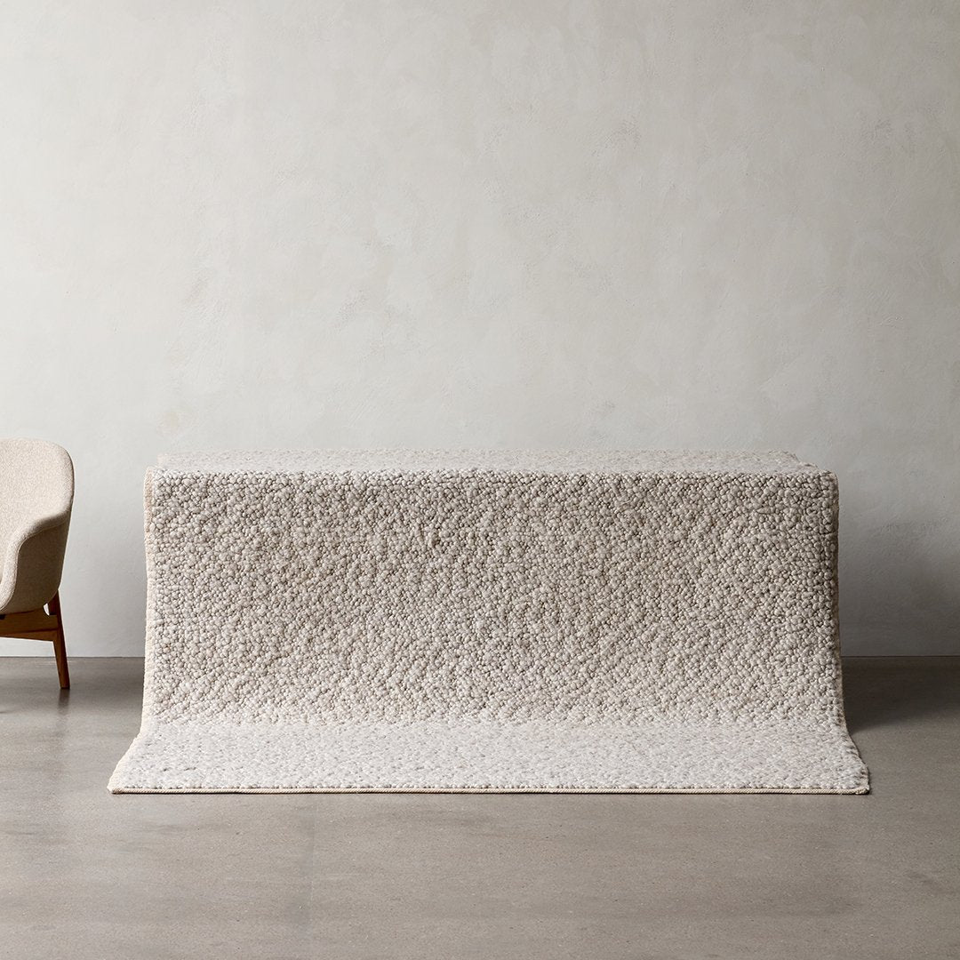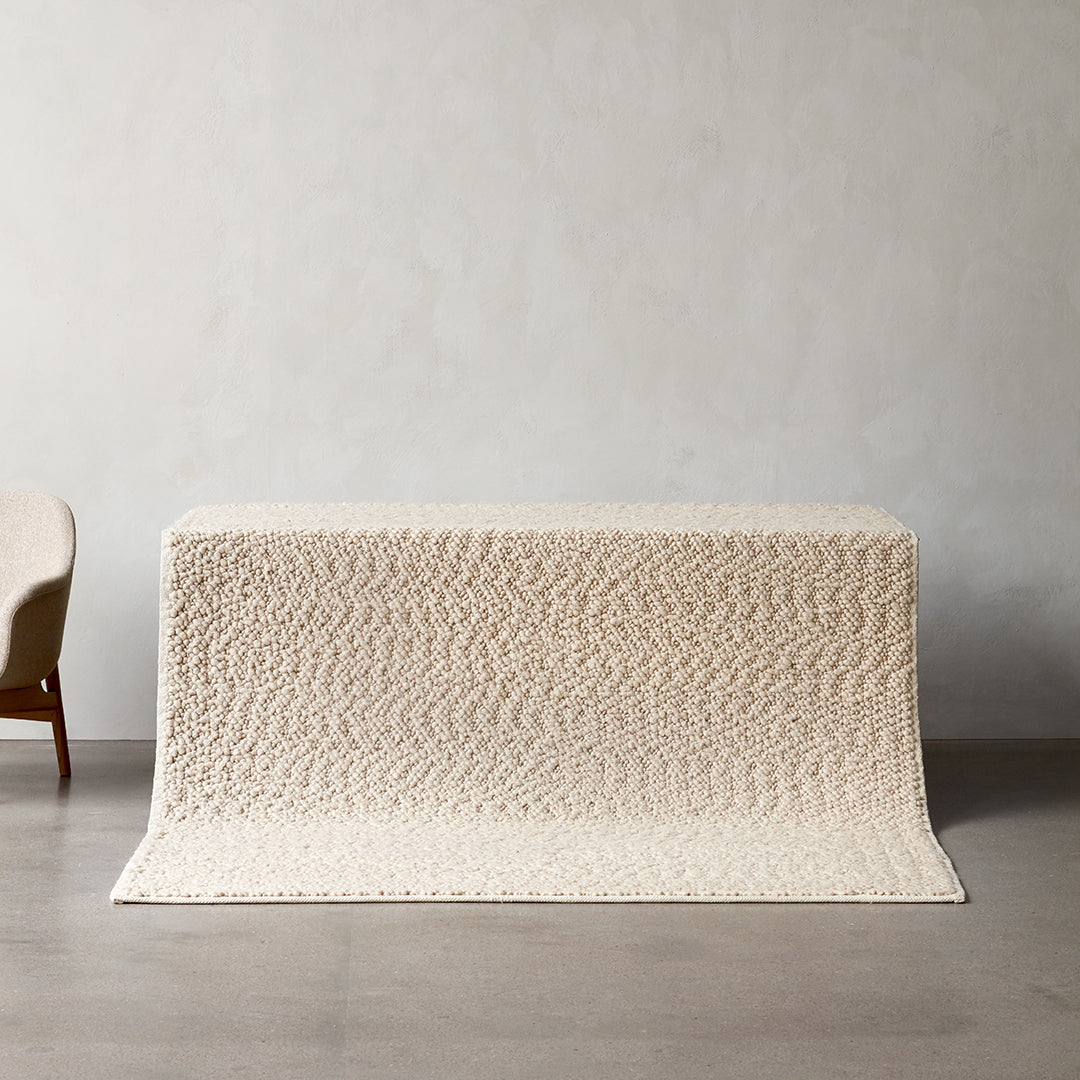 A well-designed product starts with the material, according to designer Nina Bruun, who has designed Gravel Rug for MENU, a natural wool rug with a soft handle. Using nature as the starting point, the design focuses on wool and its inherent qualities. Forgoing color dyeing in favor of natural fibers in tonal hues to create unique sense of depth, it complements any space, private or public, with its tactile expression.