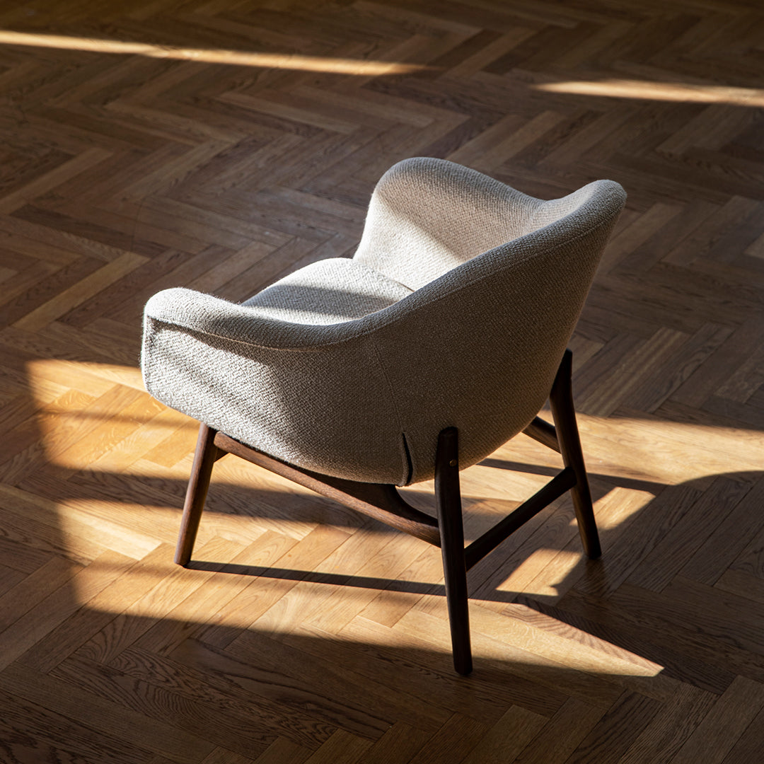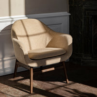 Already available in multiple iterations, from a comfortable dining chair to a sophisticated swivel-base chair‚ the Harbour series gains a new member: the Harbour Lounge Chair. A sculptural piece with a minimalist expression, the solid yet lightweight construction retains all the hallmarks of its predecessors, while adding laid-back comfort to the series. Set on a solid wood frame, the upholstered shell with gently curved sides and an angled backrest retains the sense of being cradled and supported, while inviting complete relaxation.