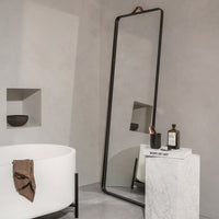 In the spirit of Scandinavian simplicity, the two Danes behind Norm Architects, Jonas Bjerre-Poulsen and Kasper Ronn, always strive to cut to the bone. To find the simplest possible solution without forgetting the beauty of the shape or the details all in order to reach a point where nothing added nor subtracted will make the product better. When you look at Norm Floor Mirror, they stopped at the exact right point. A beautiful piece of design with simple aesthetics, powerful looks and fine details. Designed to lean against the wall or to go, stand or hang wherever you find it best. Powder-coated Aluminum, Glass Mirror, Leather