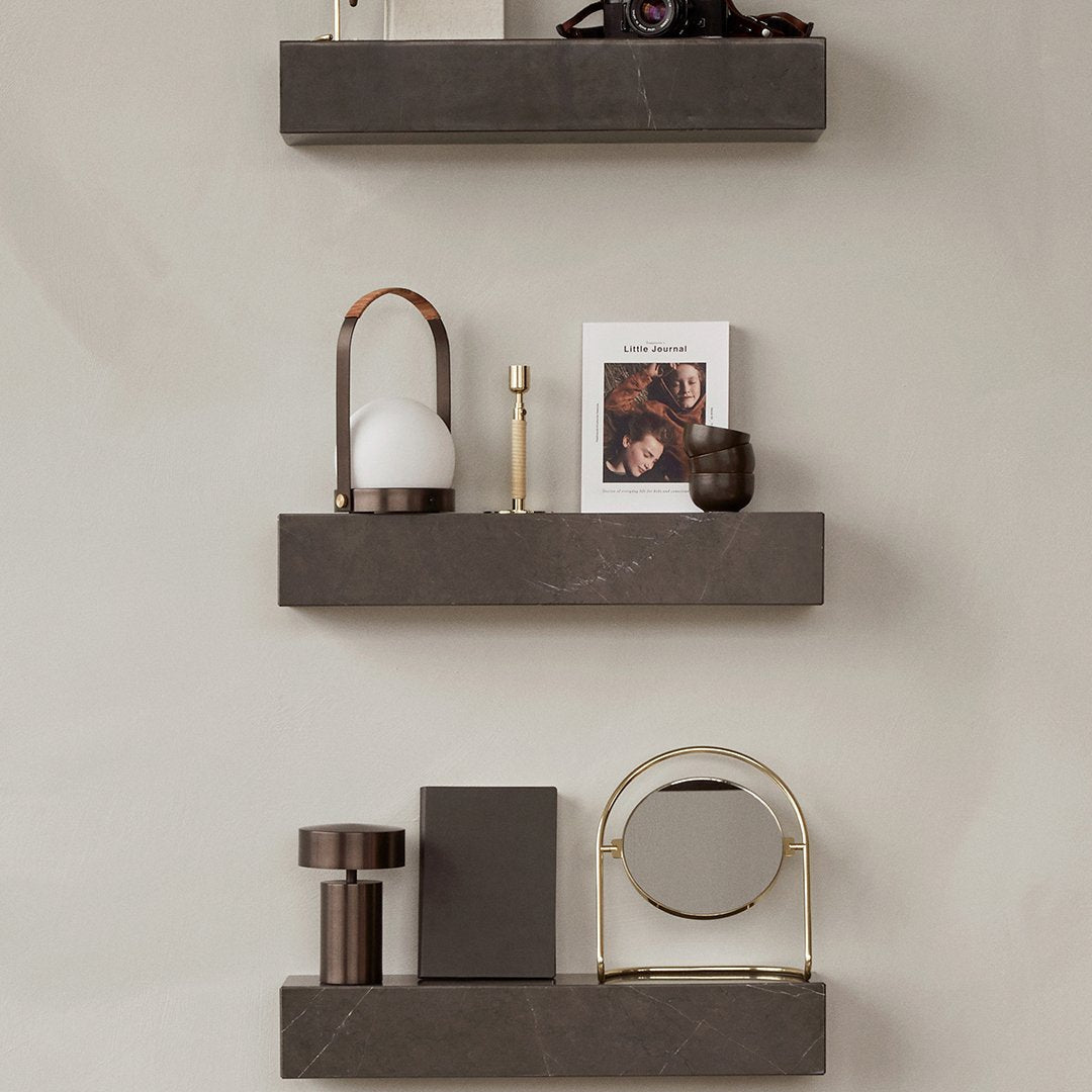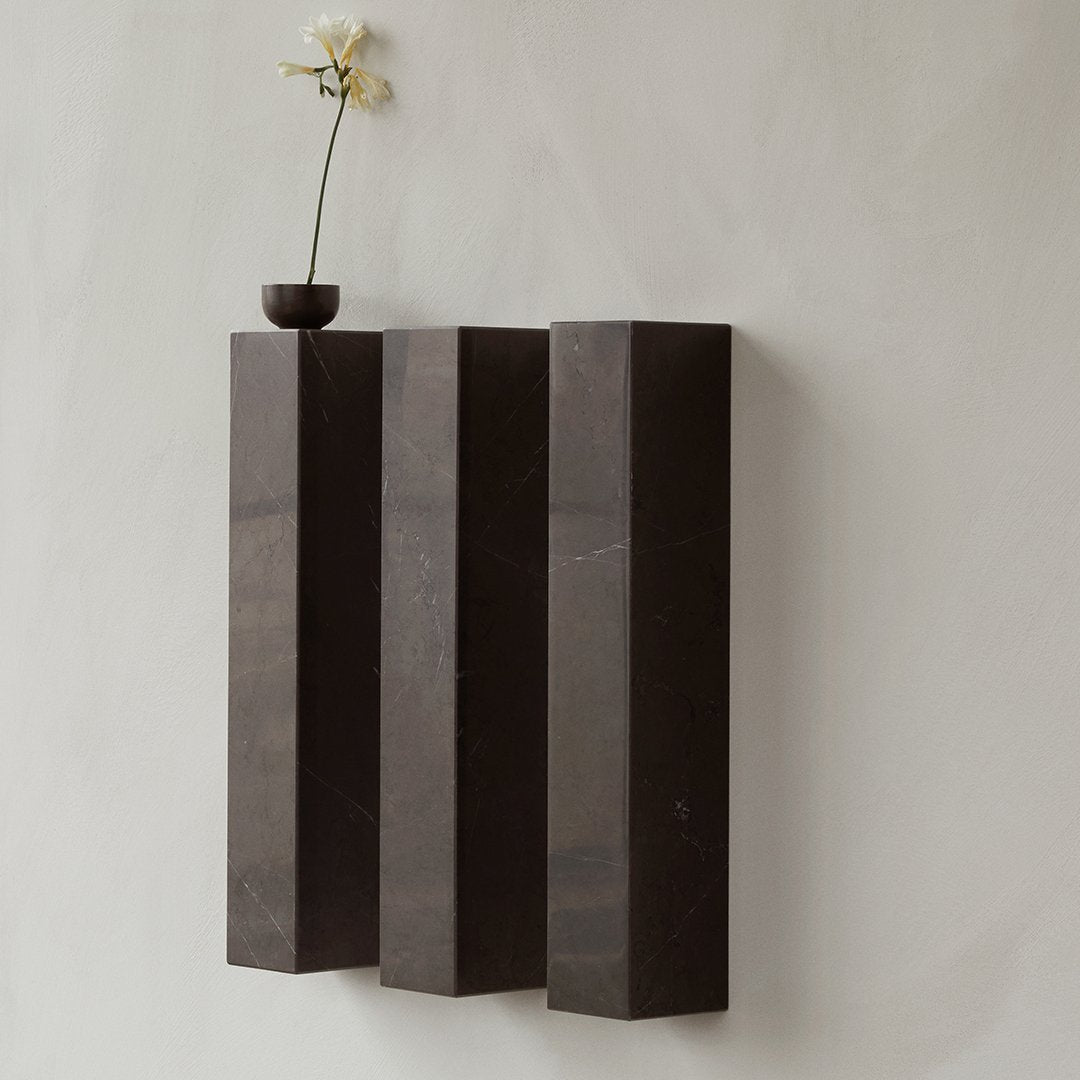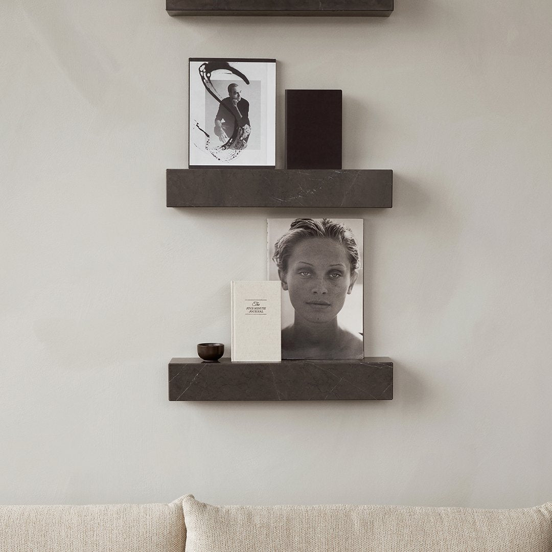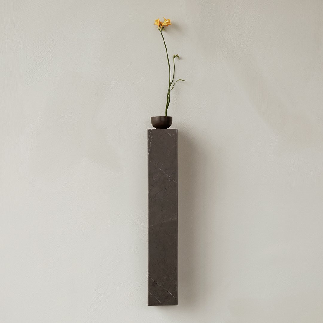 The minimalist profile of the Plinth Shelf is shaped from Grey Kendzo, a rich, brilliant white veined marble, carefully selected for its inherent beauty and light-reflecting qualities. Equal parts elegant and purposeful, the 60 cm long shelf can be attached horizontally to a wall for use as a display ledge or bookshelf, or vertically as a wall-mounted podium on which to showcase a favourite object.