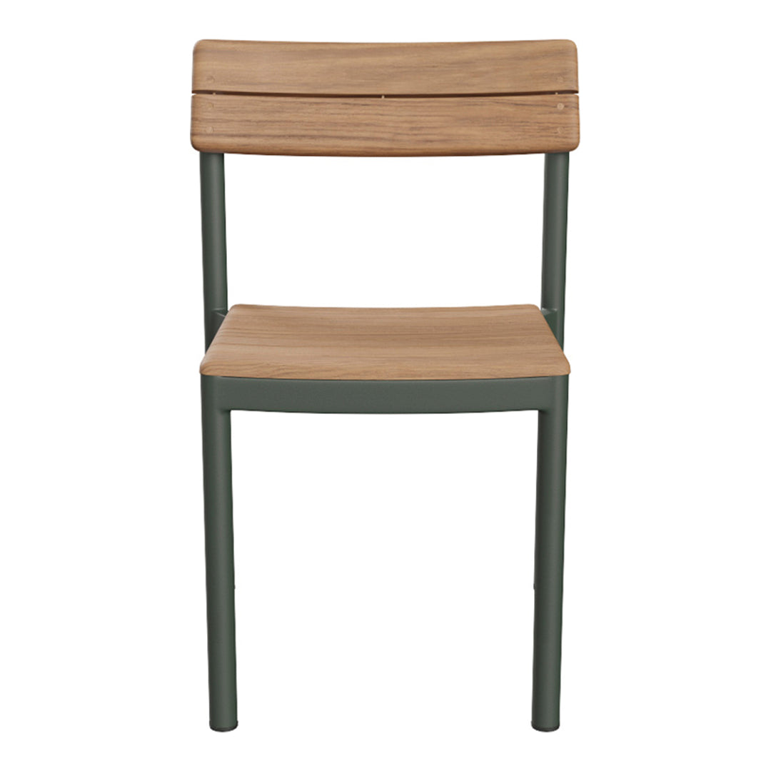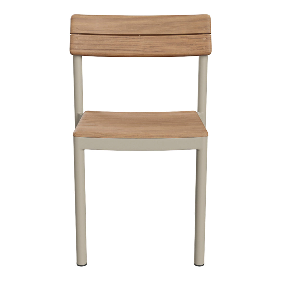 The Pelagus chair is high on comfort for long dinners around a table. With its teak back and seat and powder- coated aluminum frame, the Pelagus chair offers great versatility, it is light enough to move easily and stack, yet sturdy.