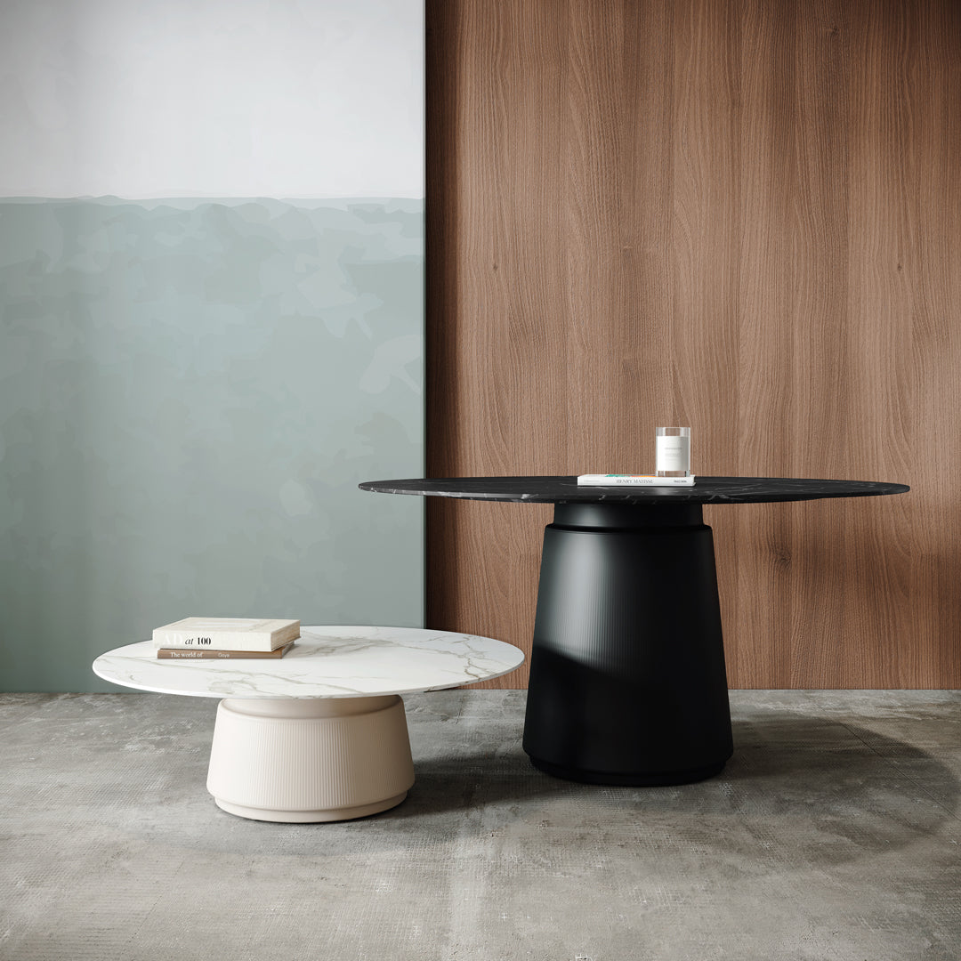 Undeniably Mediterranean in origin, Dorik finds its inspiration in the grandeur of the classical columns of ancient Greek Doric architecture. Sculpted in harmonious proportions to feature intricate details and refined textures, Dorik tables bring a timeless elegance to any room. Manufactured using the rotational moulding technique, the resulting pieces are able to stand on a single leg, which allows them to be expanded in the use of several columns in order to extend their use, for example to form distinguished meeting tables.