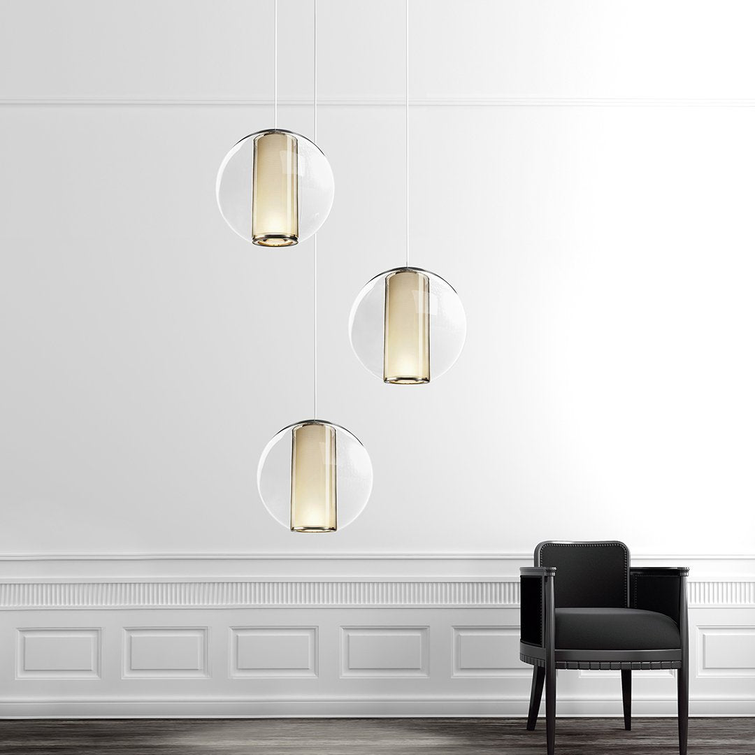 Bel Occhio is a study in weightlessness and transparency. Its inner column suspends freely within a clear acrylic shell and provides both ambient and focused illumination. Available with Orange or White diffuser.