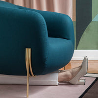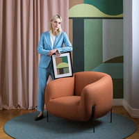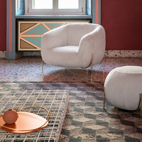 Sometimes a name can say a lot, sometimes it says everything. Geo is an all rounded armchair, the protagonist in a home. It’s generous without invading space, welcoming without being suffocating and soft without being informal. Thanks to its unique design Geo is voluminous yet light, like a nest suspended in air held up by small branches. The proportions have been designed with upmost attention. Every detail has been carefully studied to give life to a special object where the main volume of the seat and the very light volume of the legs find a unique harmony together. The metallic adds a luxurious feel. Further the material shell is completely removable for dry cleaning and the metal structure in the various finishings is designed for easy cleaning. Fully removable covers.