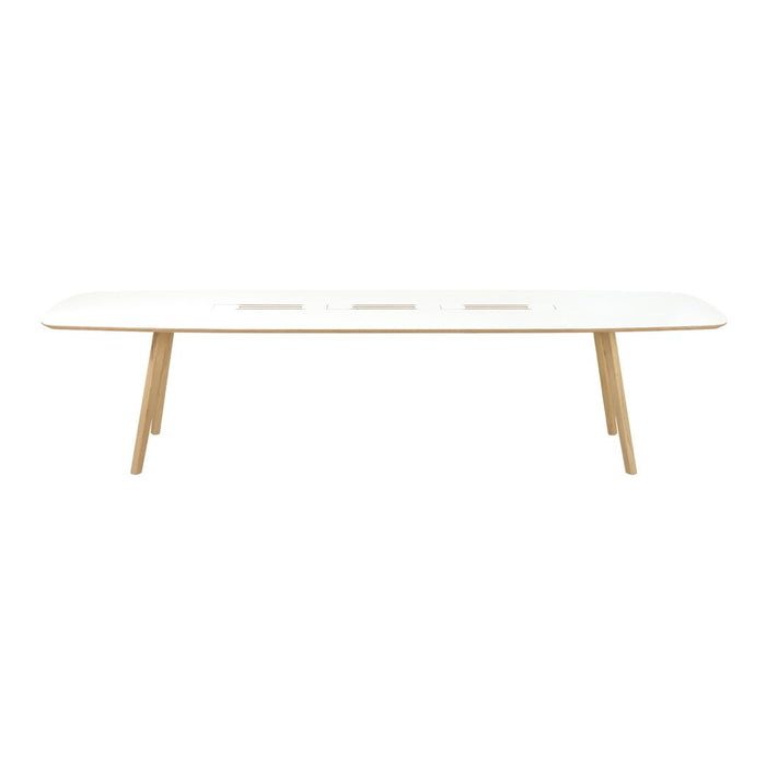 It is characterized by a wooden frame inspired by the sawhorse of the working tables, and the rounded shape of the top with its contemporary lines. Defined by great flexibility, Wing can be completed with acoustic panels, a brass reading lamp and wooden or metal trays that are installed on the large central channel through a magnetic fixing system. Power supply and cable management are allocated on the same central channel. In a working environment that is increasingly oriented towards the integration of the individual into a network, the Wing table system has been developed to guarantee great flexibility and rapid adaptability to the changing needs of space organization. The acoustic padded panels allow to reconfigure the work areas passing from macro sharing environments to micro environments for the focus of the individual, creating a mood favourable to the realization of ideas. Shapes and materials have been designed to convey a feeling of wellbeing that creates a relaxed and at the same time productive environment, allowing the individual to fully live the eco-system-work.
