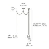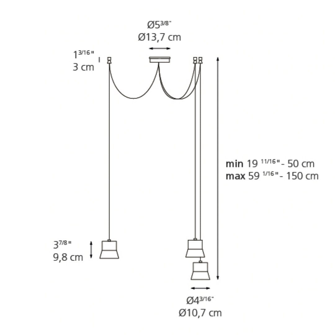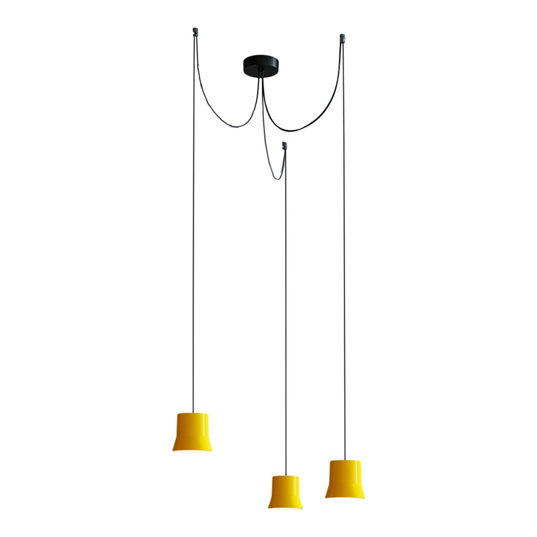 Gio Light Cluster features three colored diffusers with cords of varying lengths that can be adjusted to create the ideal height and placement.