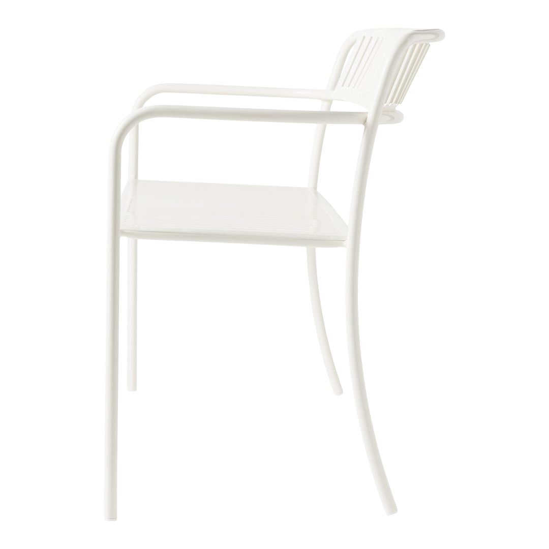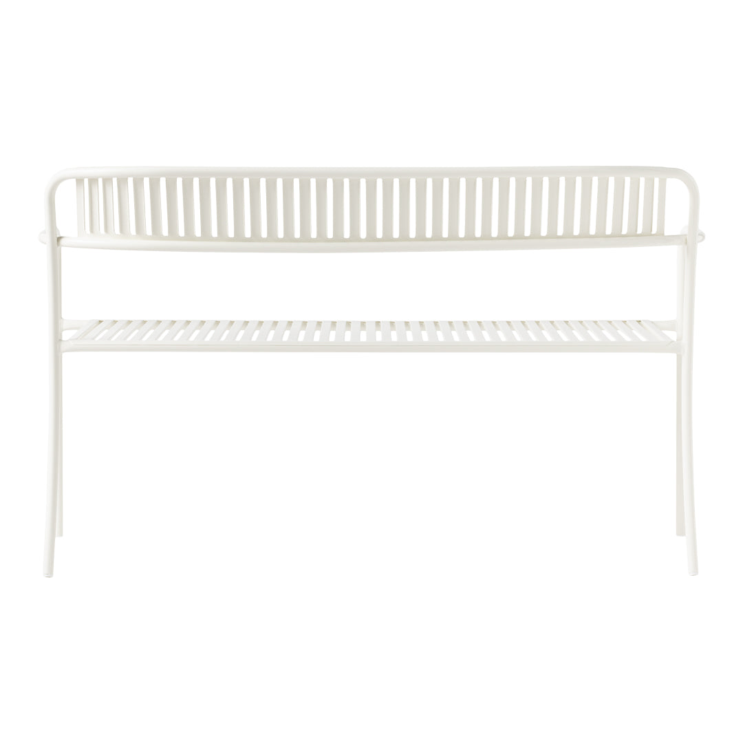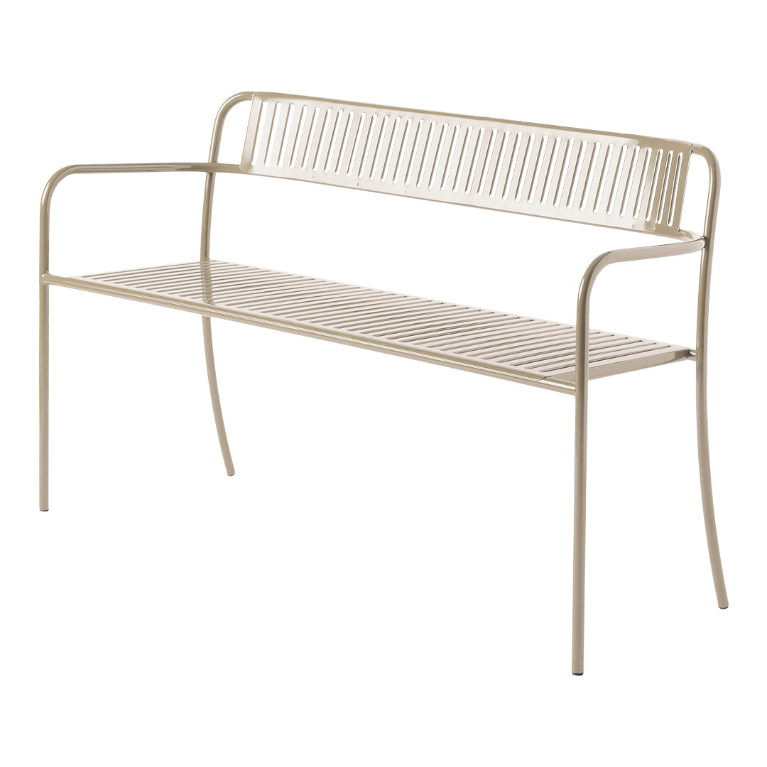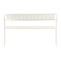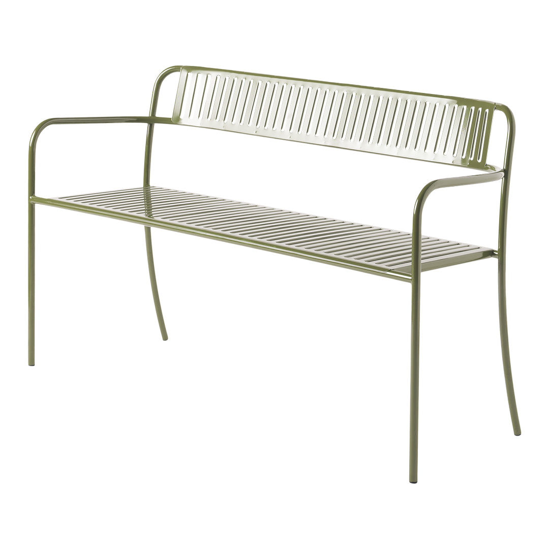 This Backed Bench elegantly completes the Patio outdoor collection imagined by Pauline Deltour. Slim, lightweight, airy, it knows how to be discreet yet attract attention with its curves and its characteristic and feminine slats, thanks to the artist's talent. Each pair of legs, made of a single thin tube, follows a curve that accentuates its desirability. The seat, composed of perforated slats pre-cut with laser, seems to be suspended. Finally, the backrest, composed of numerous perforated slats, harmoniously signs its silhouette. The use of stainless steel for this product provides it with unparalleled longevity and, through a folding mechanism under the seat, resistance while being lightweight due to the composition of this alloy. Placed alone in a park or garden, its silhouette invites meditation or relaxation.