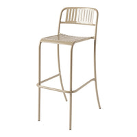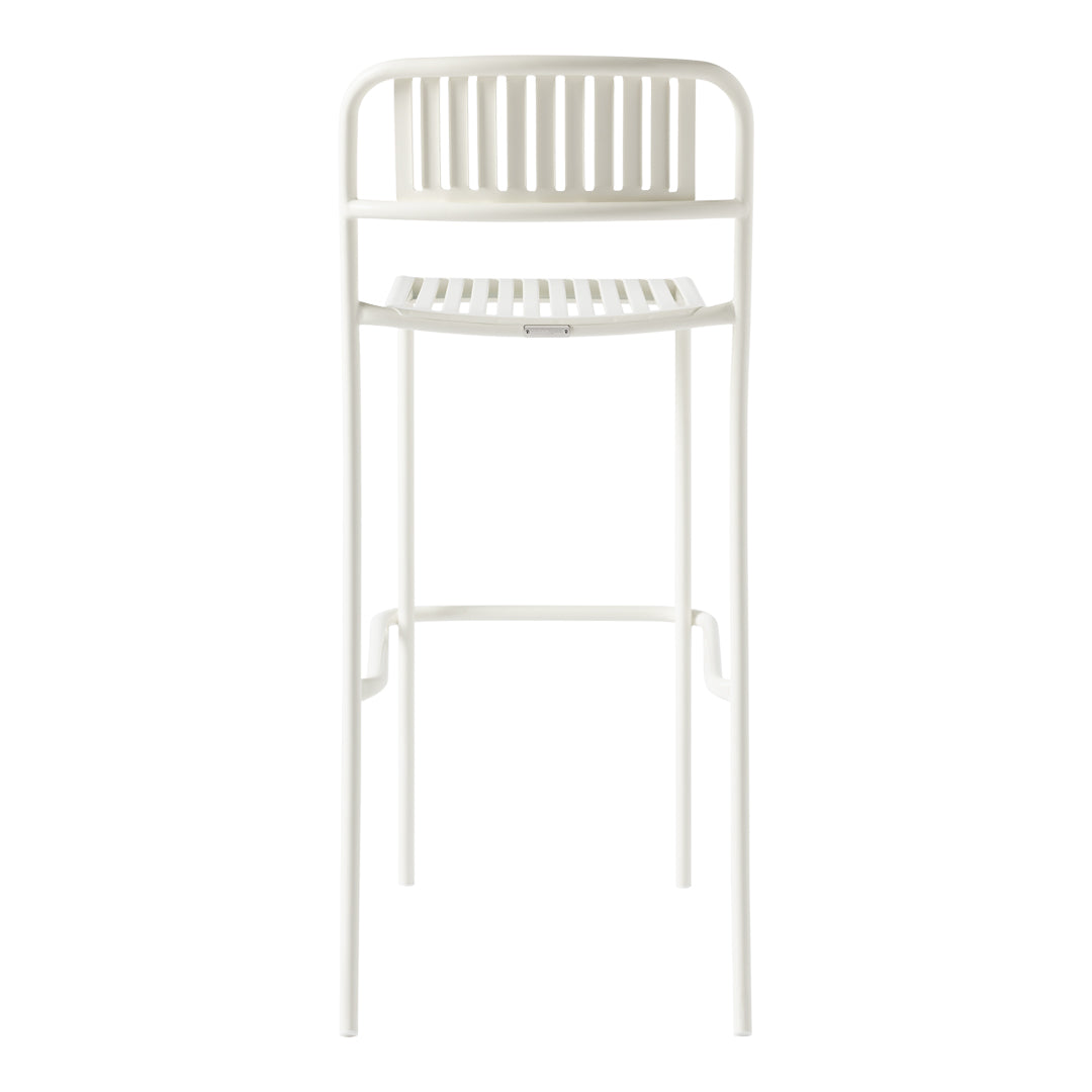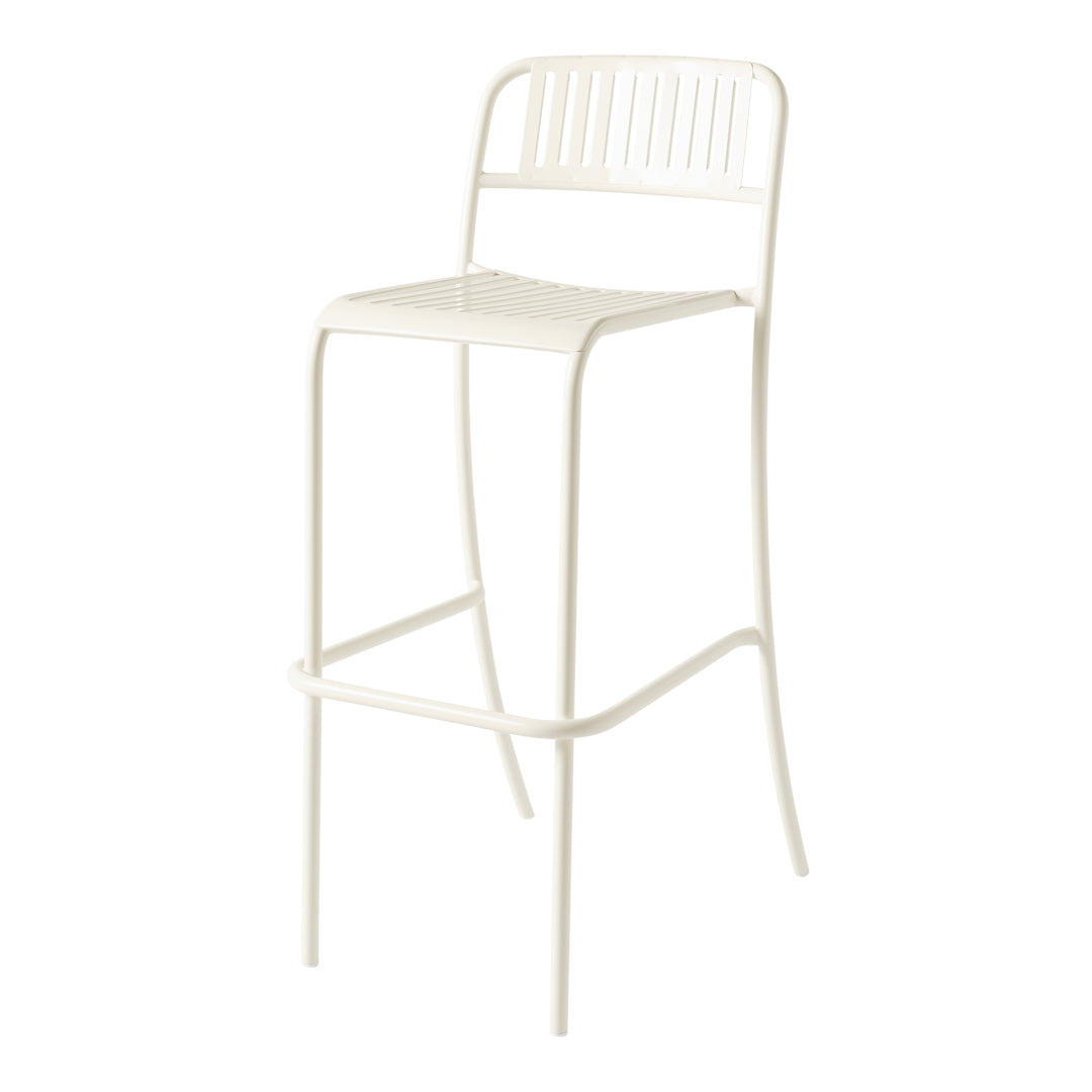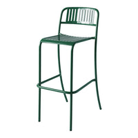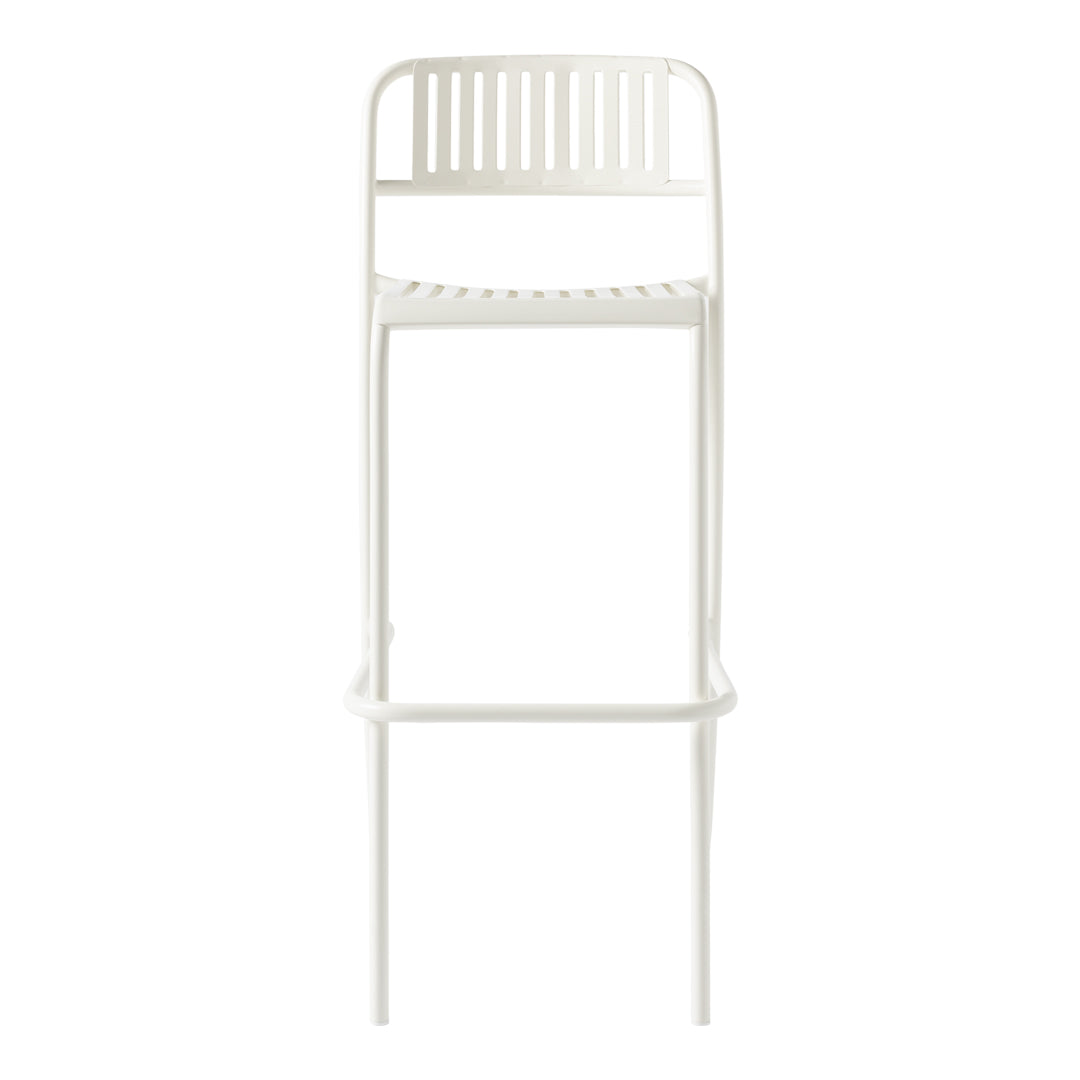 The latest addition to the Patio outdoor collection, envisioned by Pauline Deltour, the High Chair incorporates all the characteristic lines of this feminine and sensual collection. The backrest and seat are laser pre-cut and composed of perforated slats that add delicacy to a robust and durable product. The use of stainless steel for this product provides it with unparalleled longevity and, through a folding mechanism under the seat, resistance while being lightweight due to the composition of this alloy. The unique tube running from the legs to the backrest reveals a distinctive curvature that is instantly recognizable. This chair will be the perfect complement to an outdoor bar and indoors, it will elegantly enhance your kitchen island or a high table.