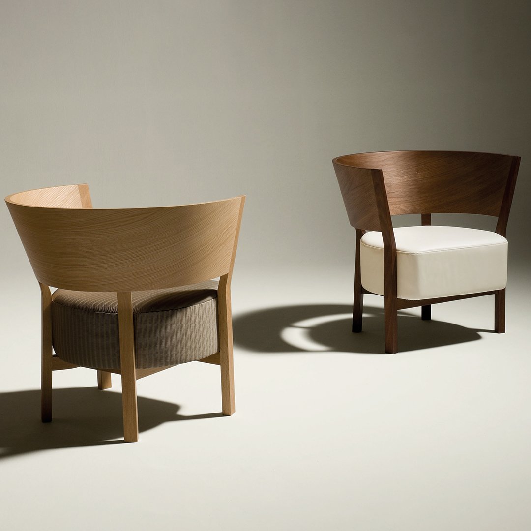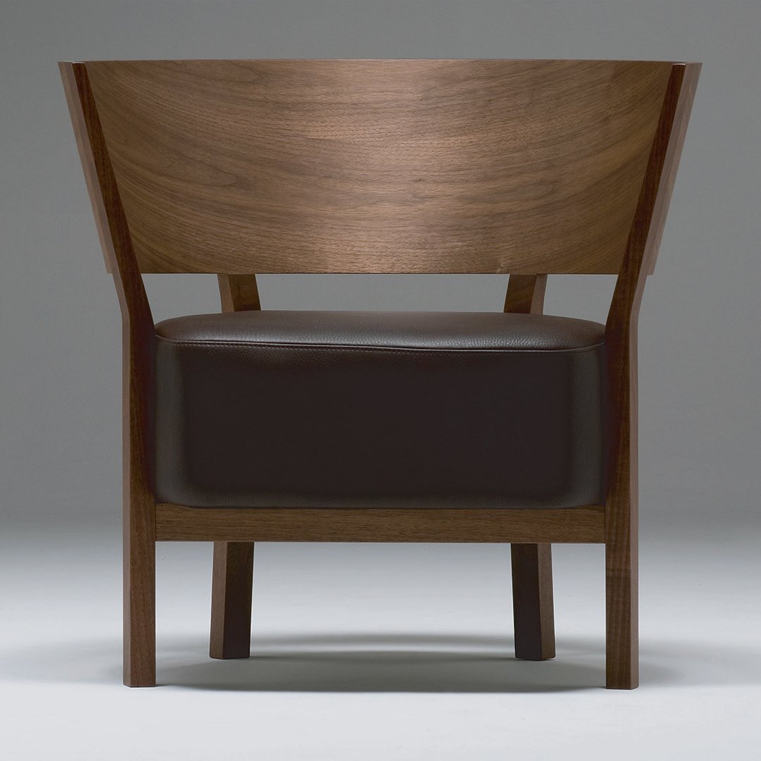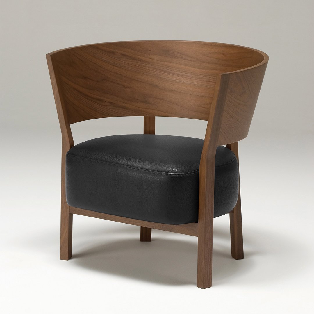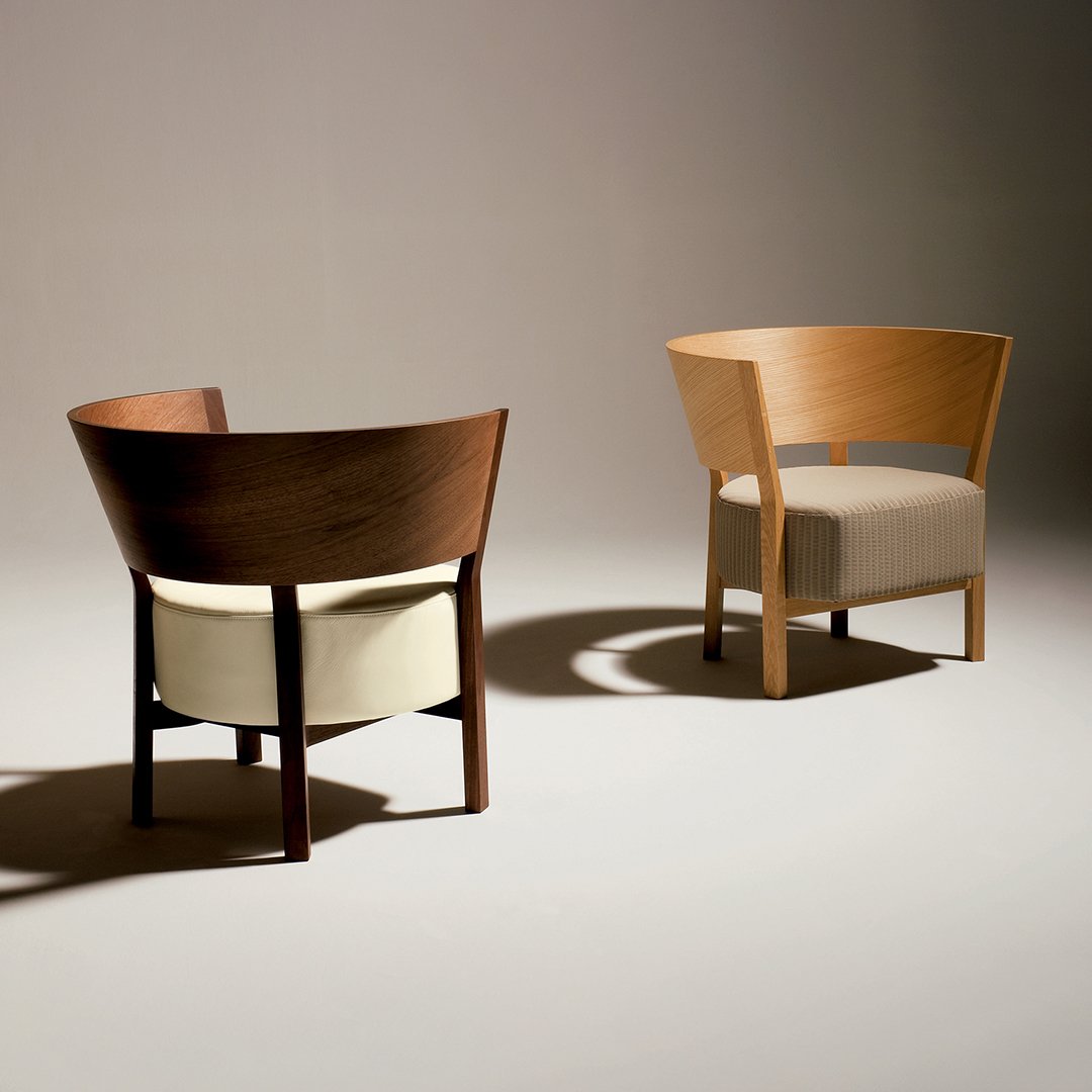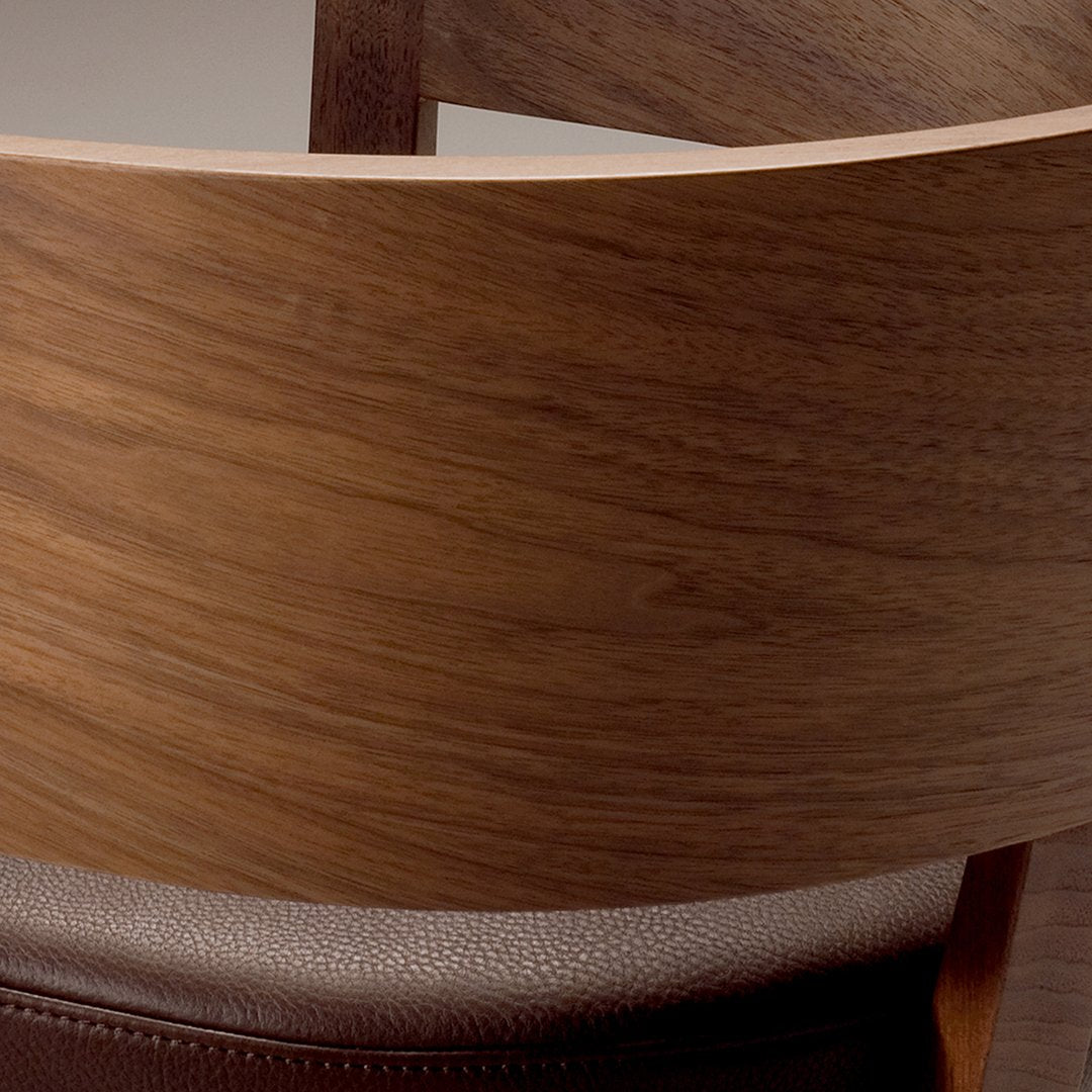 The deeply curved backrest of the TOSAI Lounge is a highly technical accomplishment of bending wood and grain patterns. The sculptural quality of this lounge chairs hemisphere is an outstanding feature of the design that is an iconic achievement born from both the designer and factory working closely together.