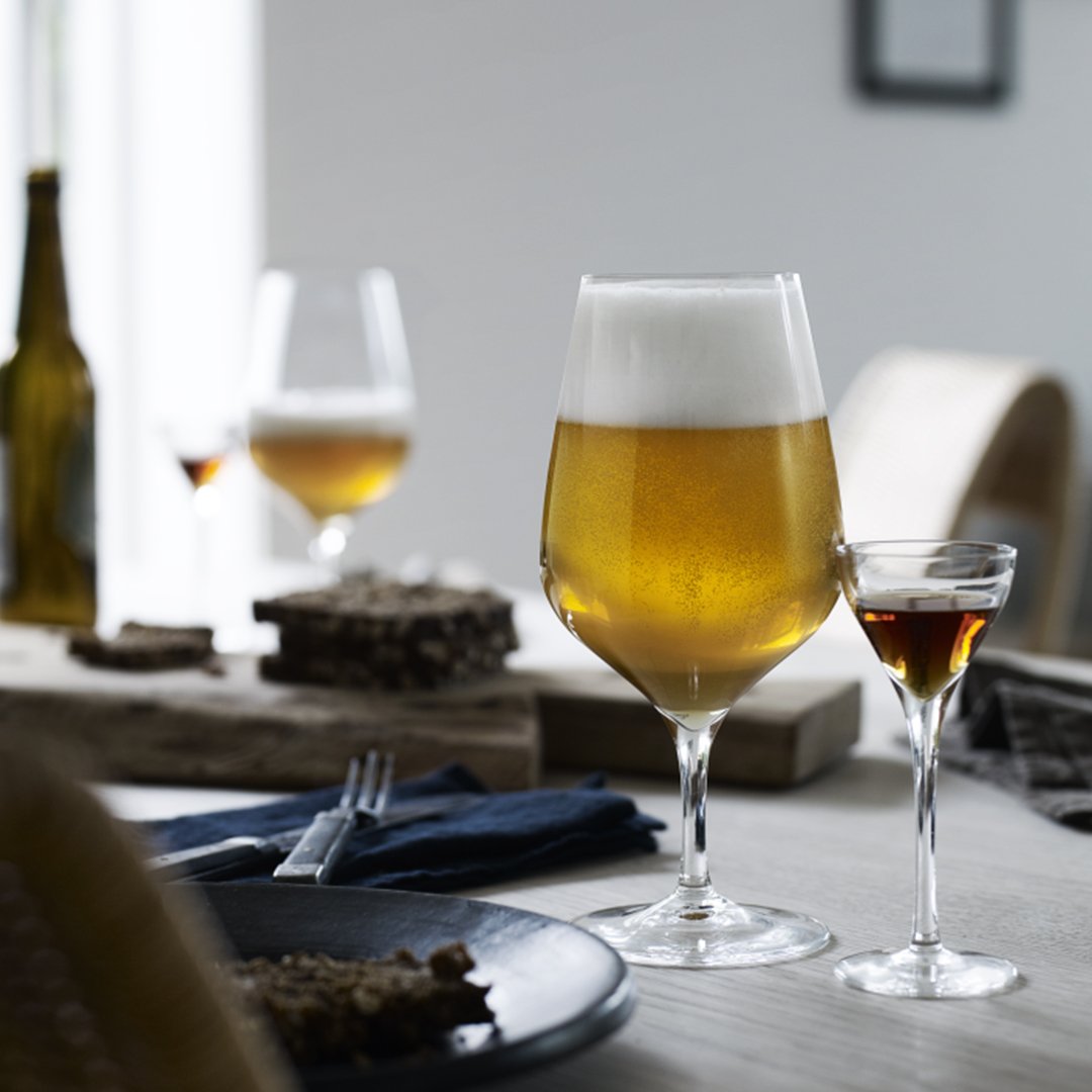 The beer glass from Peter Svarrer's Cabernet range is a good, all-round glass with a large surface to draw out the taste and aroma of the beer It is ideal for both a cold lager and a strong vinous beer with a high alcohol content that requires more room to manoeuvre The Cabernet range also includes glasses for different types of wine, aquavit and water as well as a wine carafe The beer glasses are presented in a box of six and are an ideal gift – not least for yourself!