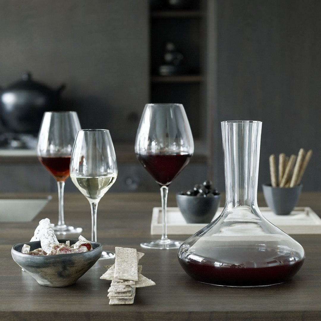The wine carafe in Peter Svarrer's Cabernet range has been created to enhance your wine experience and draw out the full potential of the wine The carafe is suitable for oxidising both a powerful and muscular vintage wine and a young everyday bottle that needs help to open up the nuances of its flavors and aromas Avoid stressing the wine by pouring it directly into the carafe Ensure instead that you pour it gently down the inside of the carafe A great gift idea – and simply a must for an evening of blind tests and wine tasting
