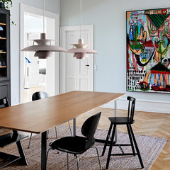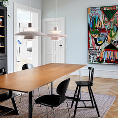 Ideal for both residential and commercial spaces, the PH5 works beautifully as a single statement piece or grouped in multiples over longer surfaces. Whether illuminating a dining table, kitchen island, or living space, this iconic fixture delivers both sophisticated architectural presence and exceptional functional lighting.