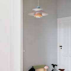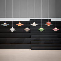 The Louis Poulsen PH5 Pendant Light, created by Poul Henningsen in 1958, represents the culmination of his lifelong quest to capture the perfect golden hour illumination. This masterpiece of Danish lighting design employs Henningsen's revolutionary three-shade system to create an environment of perfectly balanced, glare-free light that remains unmatched in contemporary lighting design.
