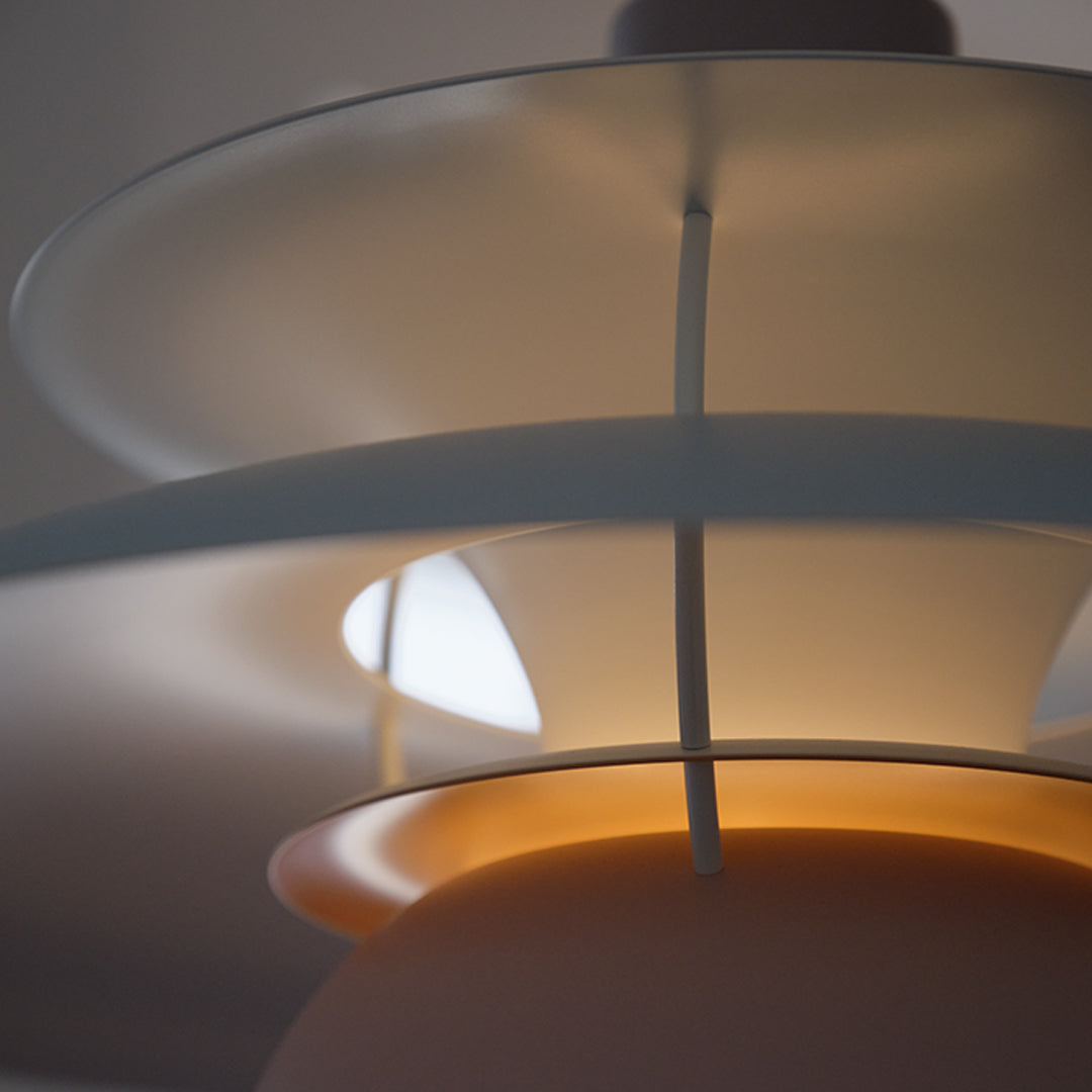 Originally designed to adapt to the constantly evolving shapes and sizes of incandescent bulbs, the PH5 has proven remarkably versatile across lighting technologies. Its timeless design continues to provide perfect illumination with modern light sources, making it as relevant today as it was over six decades ago. The classic white version features subtle red and blue interior surfaces that enhance the warmth and quality of the light distribution.