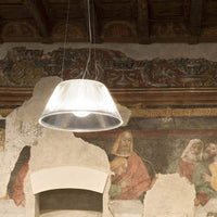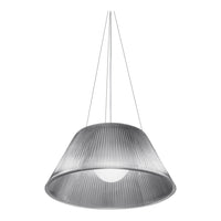 Like its floor lamp incarnation, the Romeo Moon S sees a classic silhouette with a brilliantly modern update. In this pendant version, three steel cables support its finely fluted, molded glass lampshade. The internal white glass diffuser is etched, and there is a 15' transparent cord.