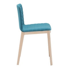 Chair with a 4-legged solid beech wood base. Thermo-polymer seat and backrest available in several colors. Optional fully upholstered shell or parallel upholstery stitching.