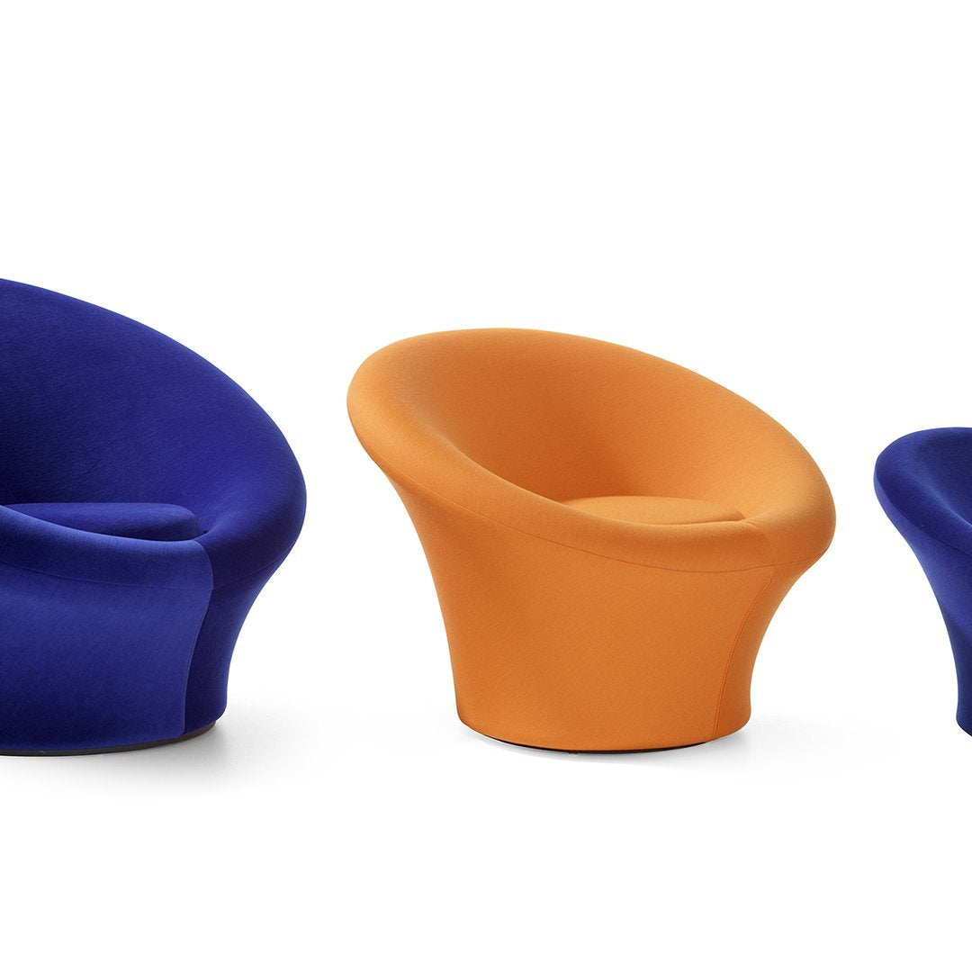 The Mushroom armchair is one of the world’s most famous designs. Designer Pierre Paulin distinguished himself with this armchair in the original shape, bright colours and revolutionary manufacturing technique for the time.