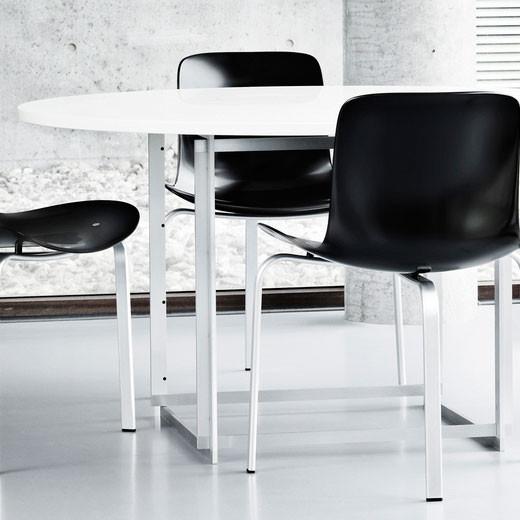 The PK58 is a minimalist table inspired by the PK54, though the table is somewhat taller and the choice of materials different. Despite these differences, the PK58 is still a study in contrasting materials and forms. Circle meets square and the pure expression leaves a monumental impression that makes the table the natural focal point in any room. The table comprises of an anodized satin-brushed aluminum base combined with a white polyester composite tabletop.