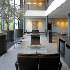 The PK65 coffee table is available in: slate, marble, granite and glass. The base is made of satin brushed stainless steel.