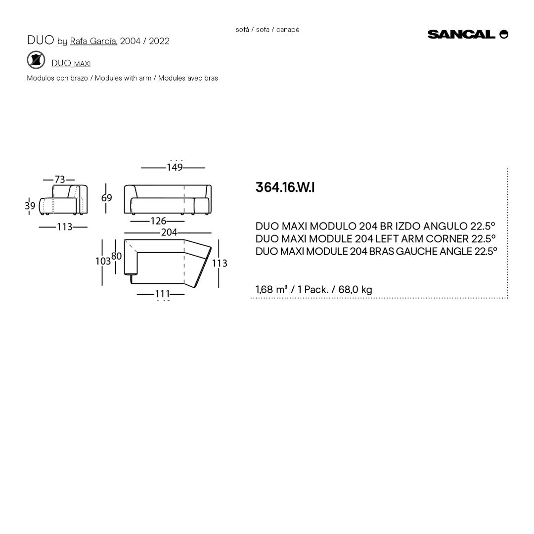 Questions about the Duo Maxi Modular Sofa - Corner w/ Armrest?