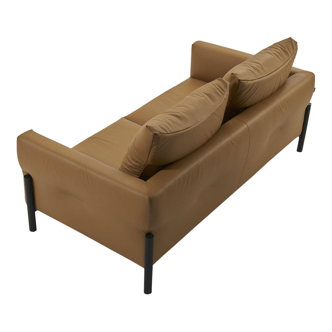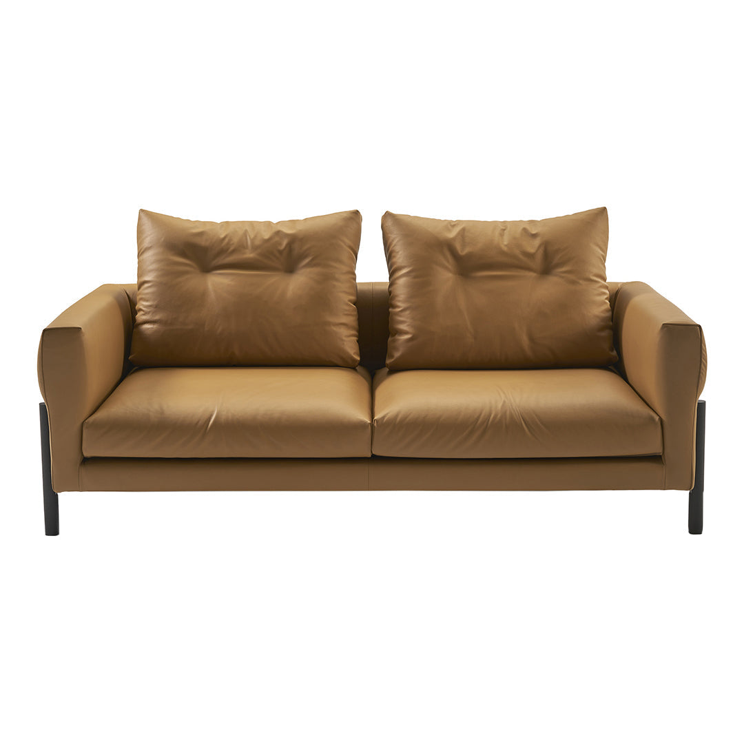 Its dimensions are moderate; its light structure gives it an airy appearance; the loose cushions and their stitching on the backrest provides a subtle, distinctive detail. The back cushions are reinforced with foam, so they remain firm when sitting down.