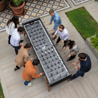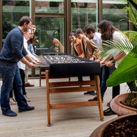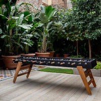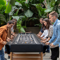 Take it to the max. The RSWood MAX football table shows that although two is company, three is not a crowd; an even eight is the perfect number to exploit the potential and benefits of this football table. The RSWood MAX is the long brother of the RS#3 Wood football table, accommodating eight players instead of four. This makes it the ideal game for community spaces and group settings. It's manufactured in high-quality materials in order to withstand intensive use by lots of players and inclement weather in the case of outdoor use.