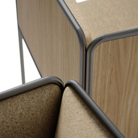 The Meetia Three-Seater Sofa with wood exterior by Actiu represents the pinnacle of industrial elegance merged with contemporary comfort design. Created by renowned architect Ramón Esteve, this substantial sofa features a striking oak wood exterior shell paired with softly upholstered interior seating, creating a sophisticated contrast that defines modern industrial style while accommodating larger gatherings with exceptional comfort.