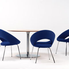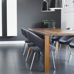 A contemporary, luxurious design. Elegant and comfortable. For meeting rooms and dining rooms. The rounded, well-fitted back makes the chair comfortable as active seating or in a more relaxed position.