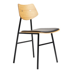 Geometric lines meet smooth curves in the 1960 Chair. The fluent curves of the plywood are supported by a square frame, which creates a lightweight chair with a dynamic feel. The 1960 Chair allows for comfortable sitting on a well-shaped plywood seat.The seat and backrest are also available with offset upholstery, which creates additional comfort without diminishing the contours and subtleness of the original design.