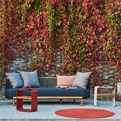 This elegant side table is based on an organically shaped aluminium frame with a practical teak shelf. Comes in four colours, so it will fit in with many different types of furniture and applications. Can be used outdoors all year round or indoors to complement a lounge chair or lounge group.