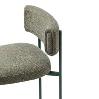 The seat, unlike the backrest, widens horizontally, expanding in an unusual way and accentuating the slender frame. This bold balance between retro elements and a contemporary aesthetic offers an innovative interpretation of the classic, where style blends harmoniously with comfort.
