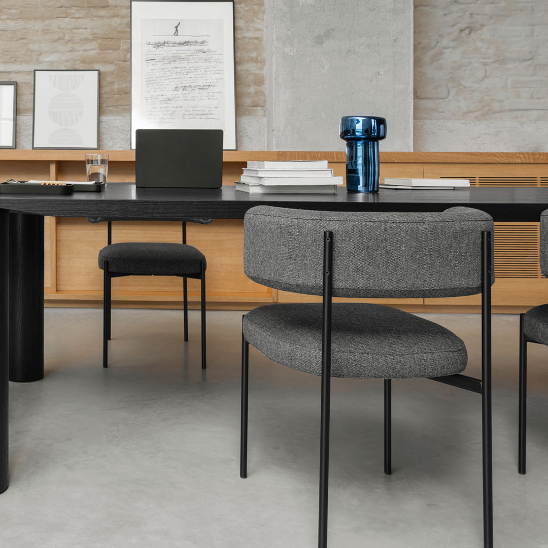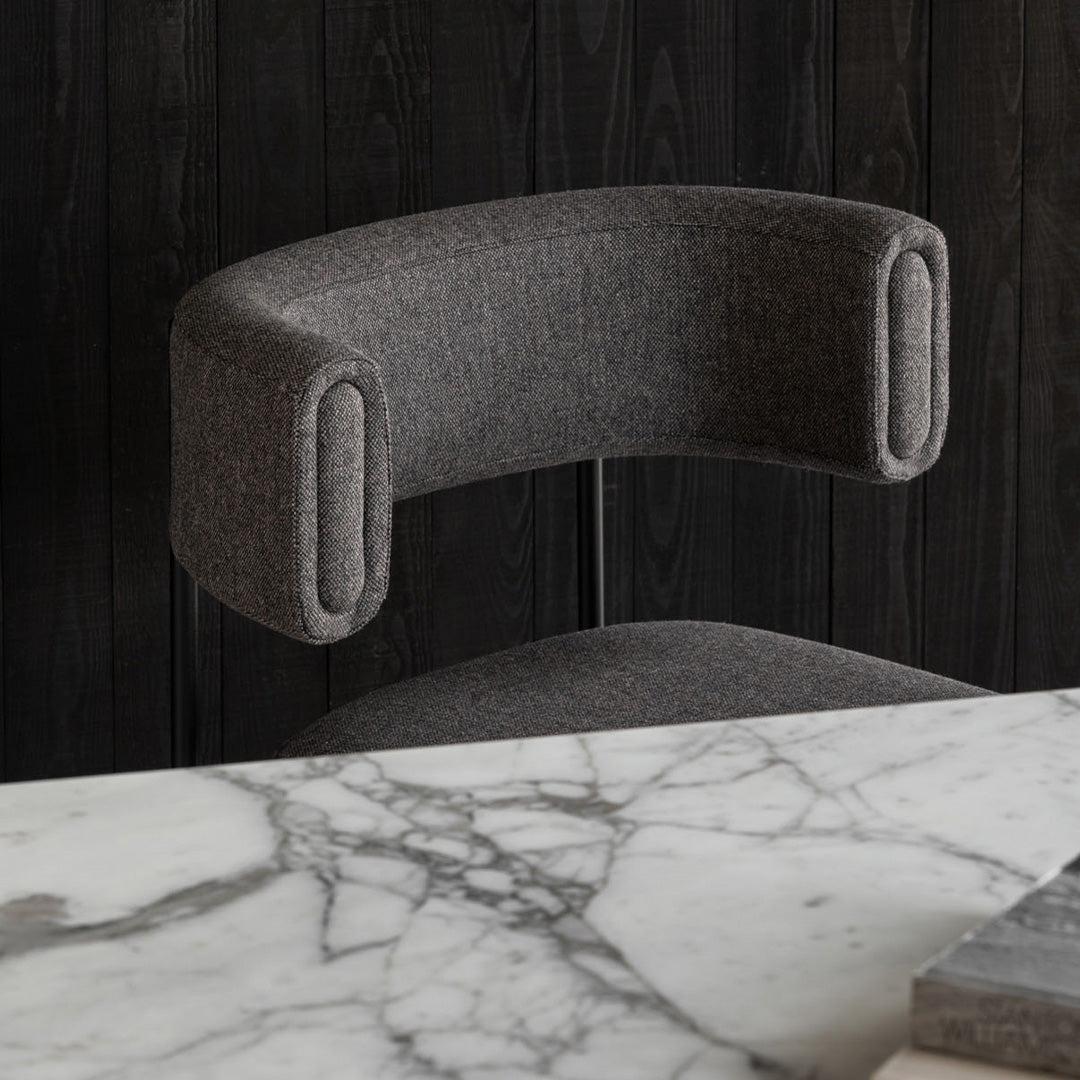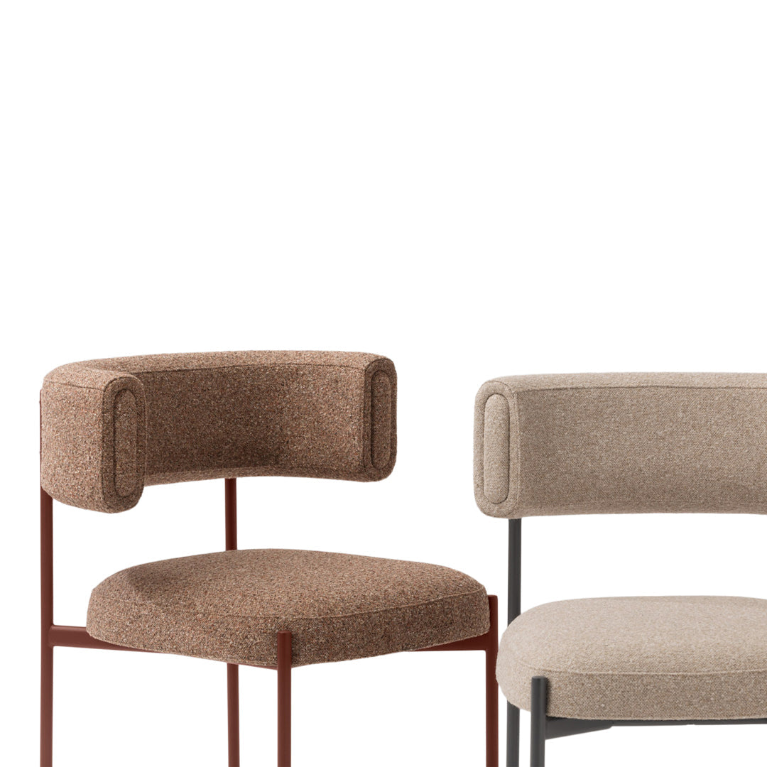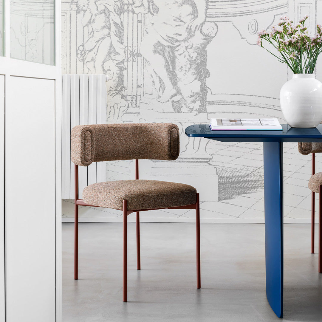 Amelie reveals itself as an enchanting collection that gives the illusion of suspension in space thanks to its vertically extended backrest.