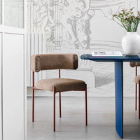 The seat, unlike the backrest, widens horizontally, expanding in an unusual way and accentuating the slender frame. This bold balance between retro elements and a contemporary aesthetic offers an innovative interpretation of the classic, where style blends harmoniously with comfort.