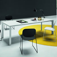 Proportions are everything. The APTA designer table adapts to the dimensions of space without ever losing its balance, thanks to a very effective contrast achieved by combining a light top slightly detached from its frame and its solid legs. It is ideal in the office and perfect in the home.