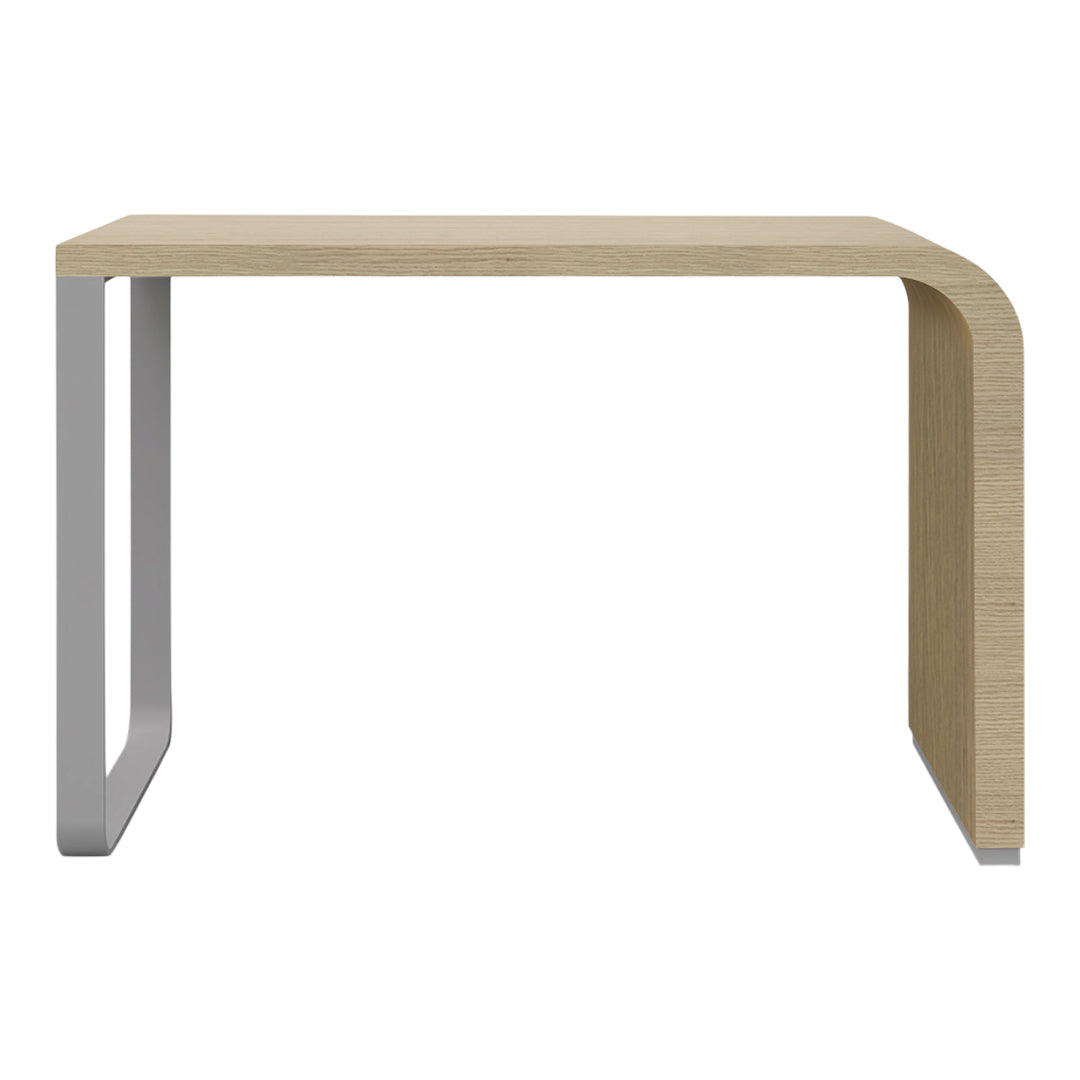 Two worlds, two 'times' meet as the brunch tradition dictates. On the one hand the wooden top that curves down to the ground and gently changes thickness, on the other the rigor of the metal support, also available in powder coated black or white. Of great originality in the play of asymmetries, this modular high table is freely composed, crossing heights and opening in the directions of a star and a wave. BRUNCH, versatile and available in an electrified version, is ideal as a cafeteria counter, a high table for the office or as a workstation in public spaces.