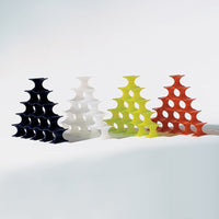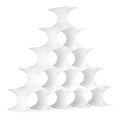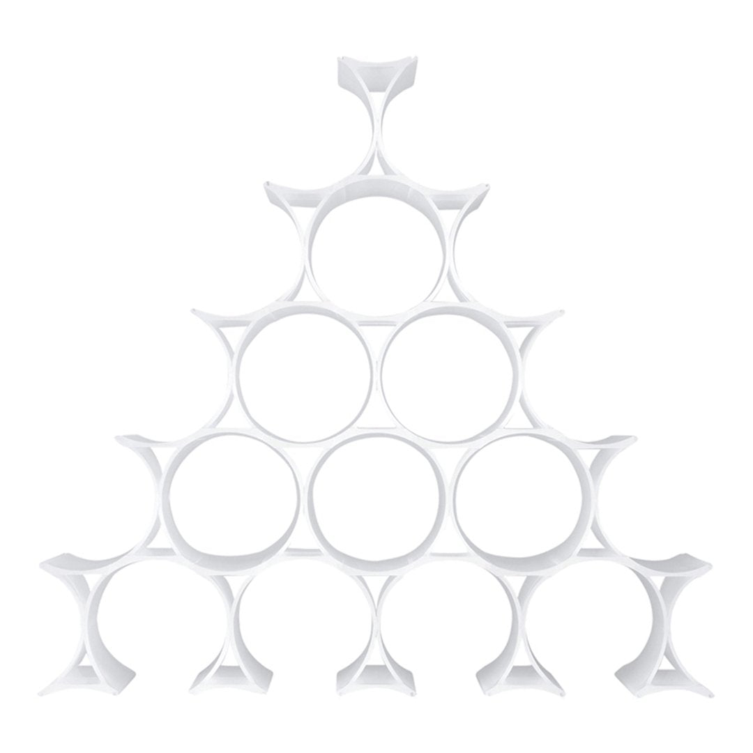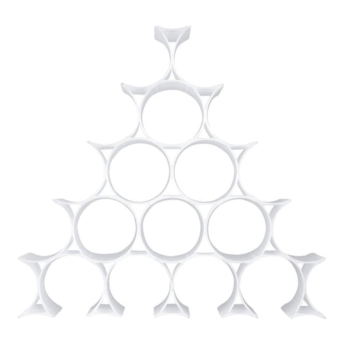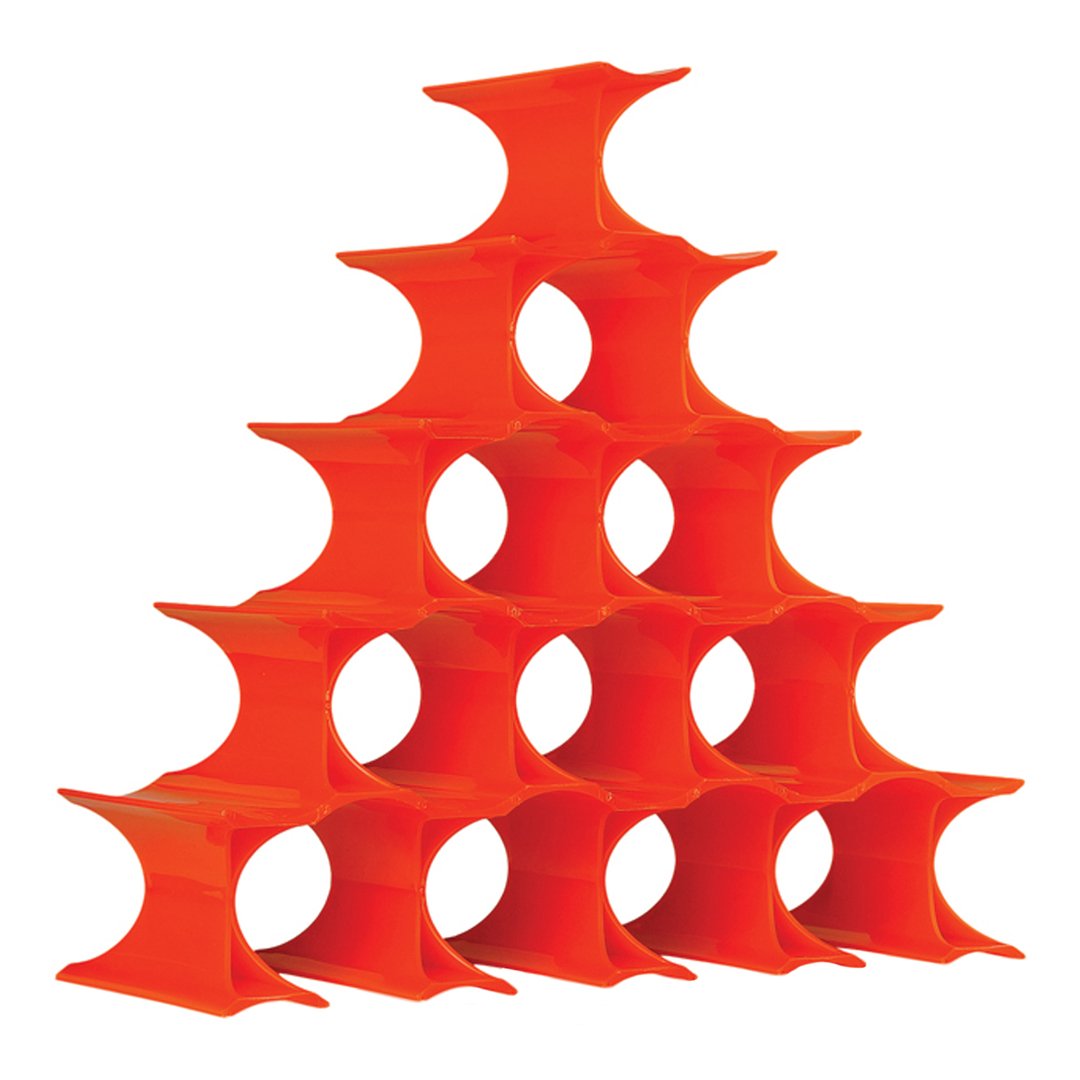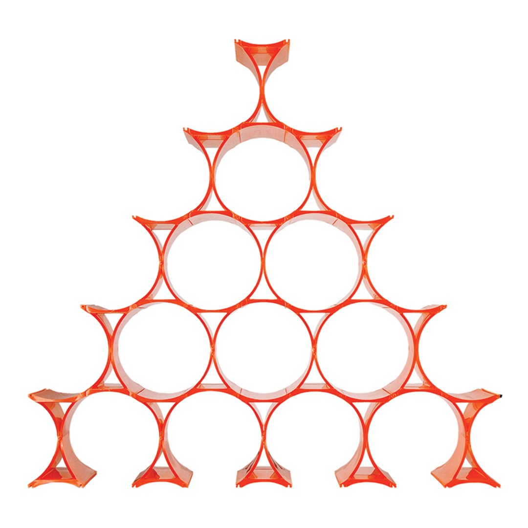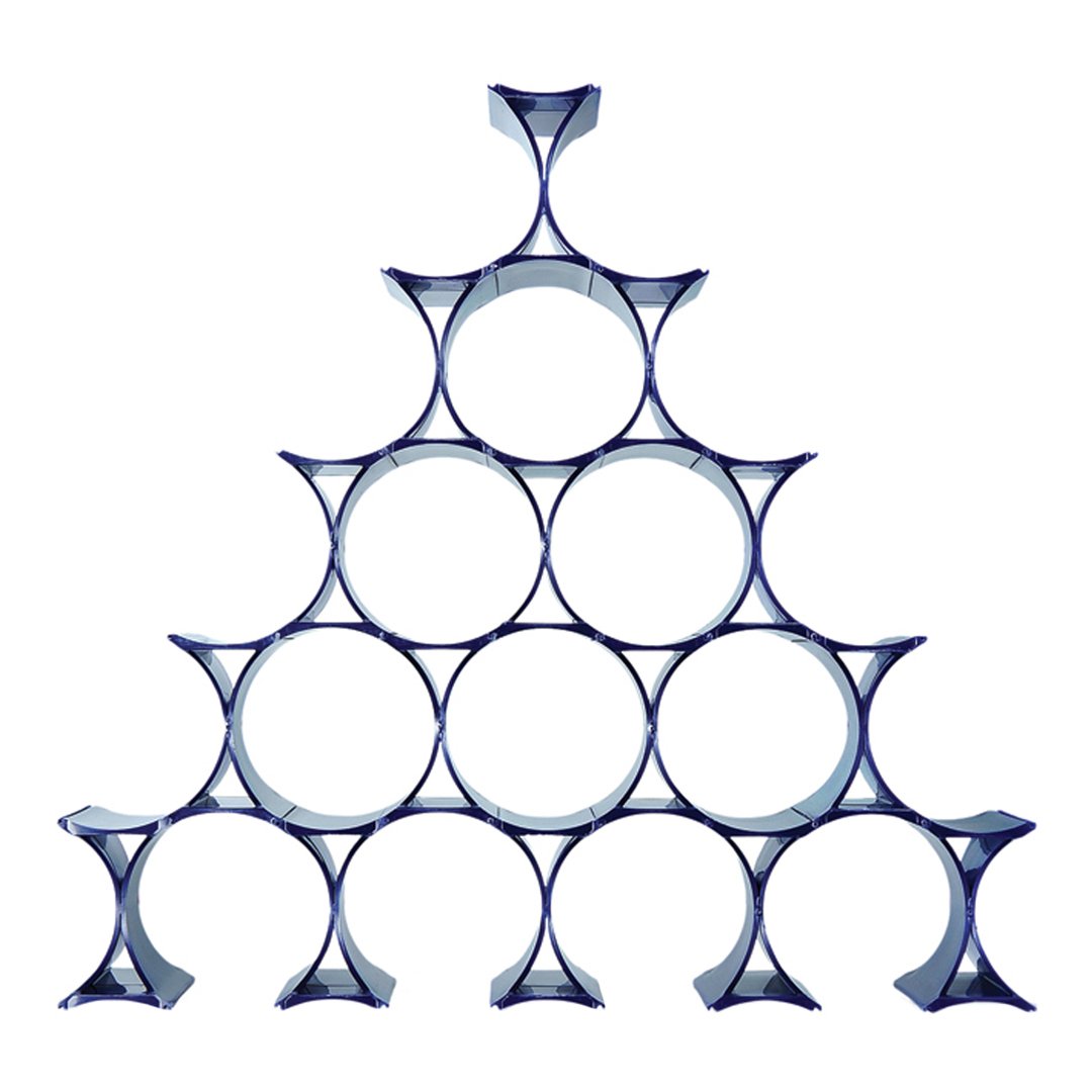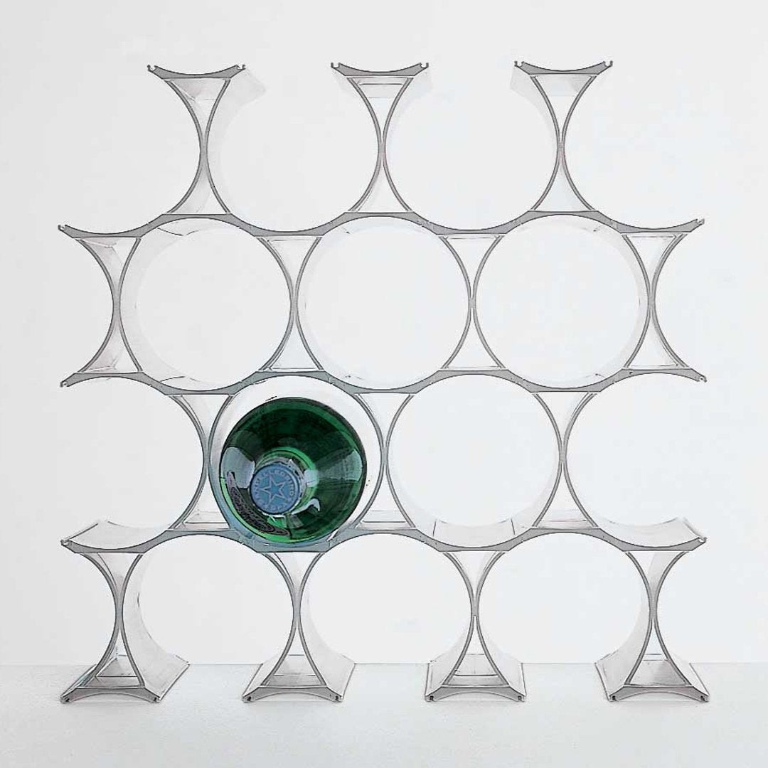 Infinity is a colorful and curvilinear, modular bottle-holder. The elements which form the bottle-holder can be fastened together to form an indefinite number of rings inside which bottles may be stored. It is available in a practical 16-piece gift pack and may be freely composed in an endless interplay of connections.