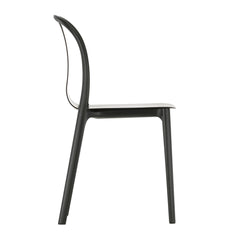 The plastic Belleville Chair consists of two components - a structural frame and a seat shell. The elegant structural frame forms the calligraphic lines of the chair's legs and backrest. The thin seat shell tapers upward from the seat into the back Belleville Chair Plastic is also suitable for outdoor use.