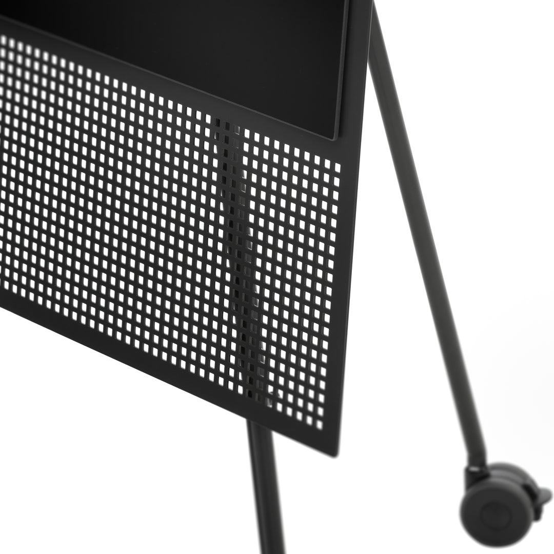 The design is kept deliberately understated and minimalist. The lightweight, powder coated steel structures serve as elegantly simple, yet multifunctional frames for the writable magnetic glass surfaces and/or BuzziFelt sound-dampening pin boards on either side of each of the SQUAD units. The latter are both contrasted and accentuated by perforated steel panels incorporated in the steel structure, boasting a clearly geometrical square pattern design. In SQUAD form equals function, and no feature is without purpose. The Collectors provide easily attachable, essential storage for pens and personal effects while creating an additional vertical pattern that is as individual as the user.